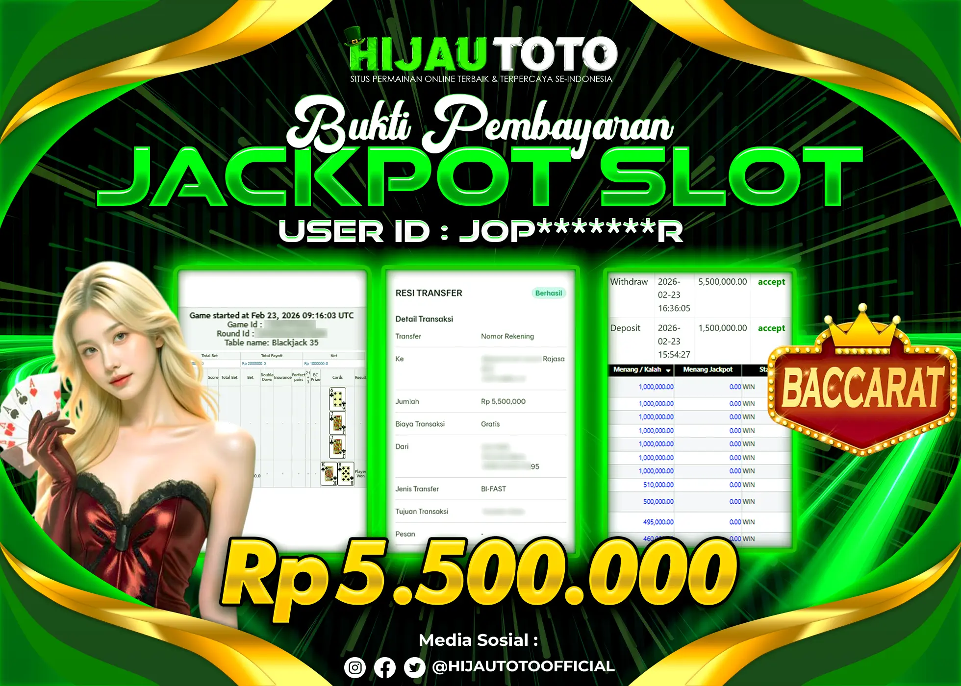 Selamat datang di HIJAUTOTO, tempatnya seru-seruan dan cuan besar! Mulai main cukup dengan modal Rp5.000 aja, taruhan super murah dari Rp100 perak! Mau main slot yang penuh warna? Atau togel dari 20 pasaran paling hits? Atau mungkin tembak ikan yang bikin deg-degan? Tenang, ada juga taruhan bola, sabung ayam, dan live casino yang bikin suasana makin hidup! Daftar sekarang dan dapetin bonus new member 100% langsung, biar modalmu makin tebal. Deposit gampang banget, bisa pakai QRIS, dan kalau butuh bantuan, customer service kita siap 24 jam nonstop. Jadi, tunggu apa lagi? Yuk, gabung dan bawa pulang kemenangannya cuma di HIJAUTOTO!