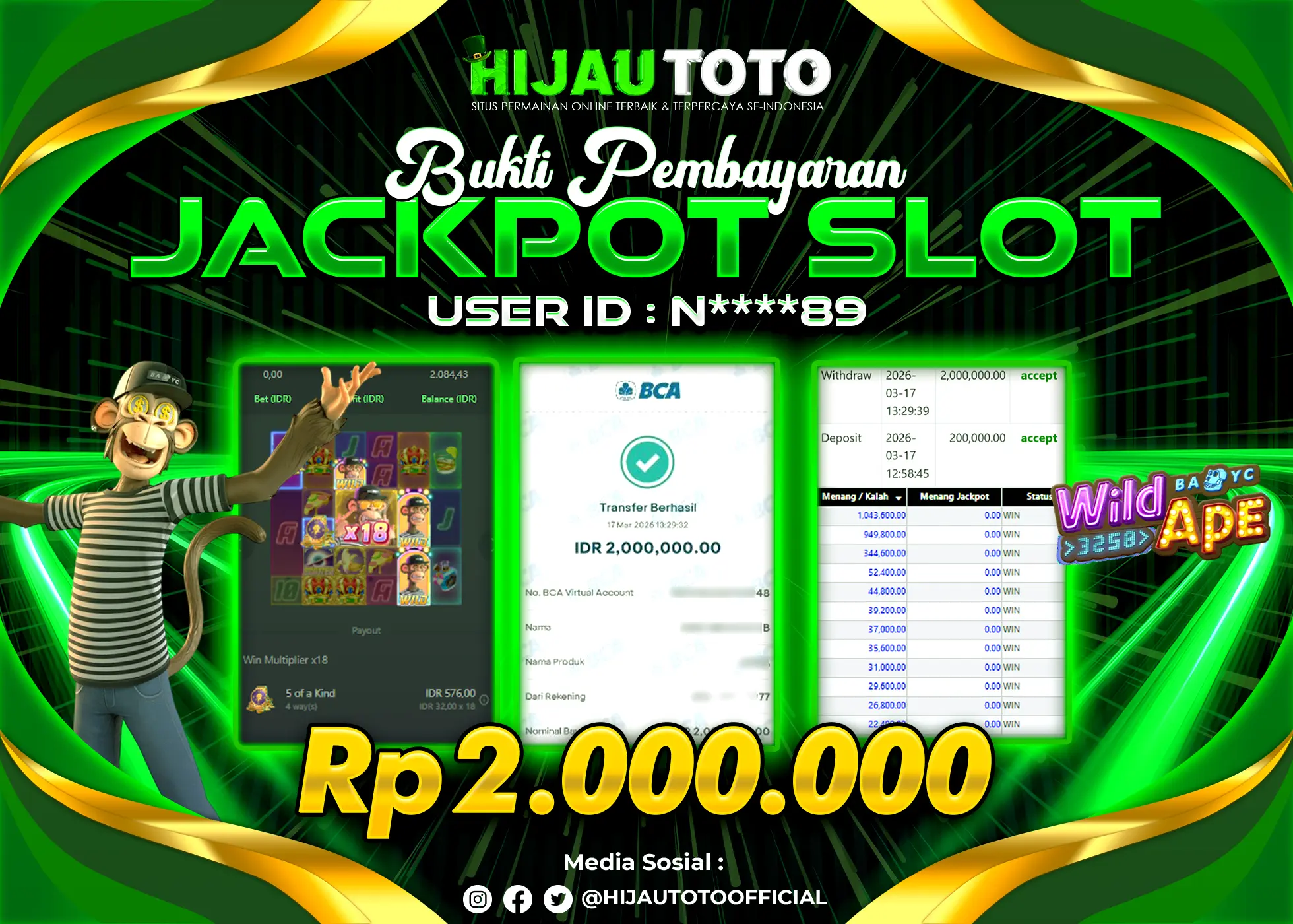 β¨ JACKPOT DI SLOT WILD APE β¨