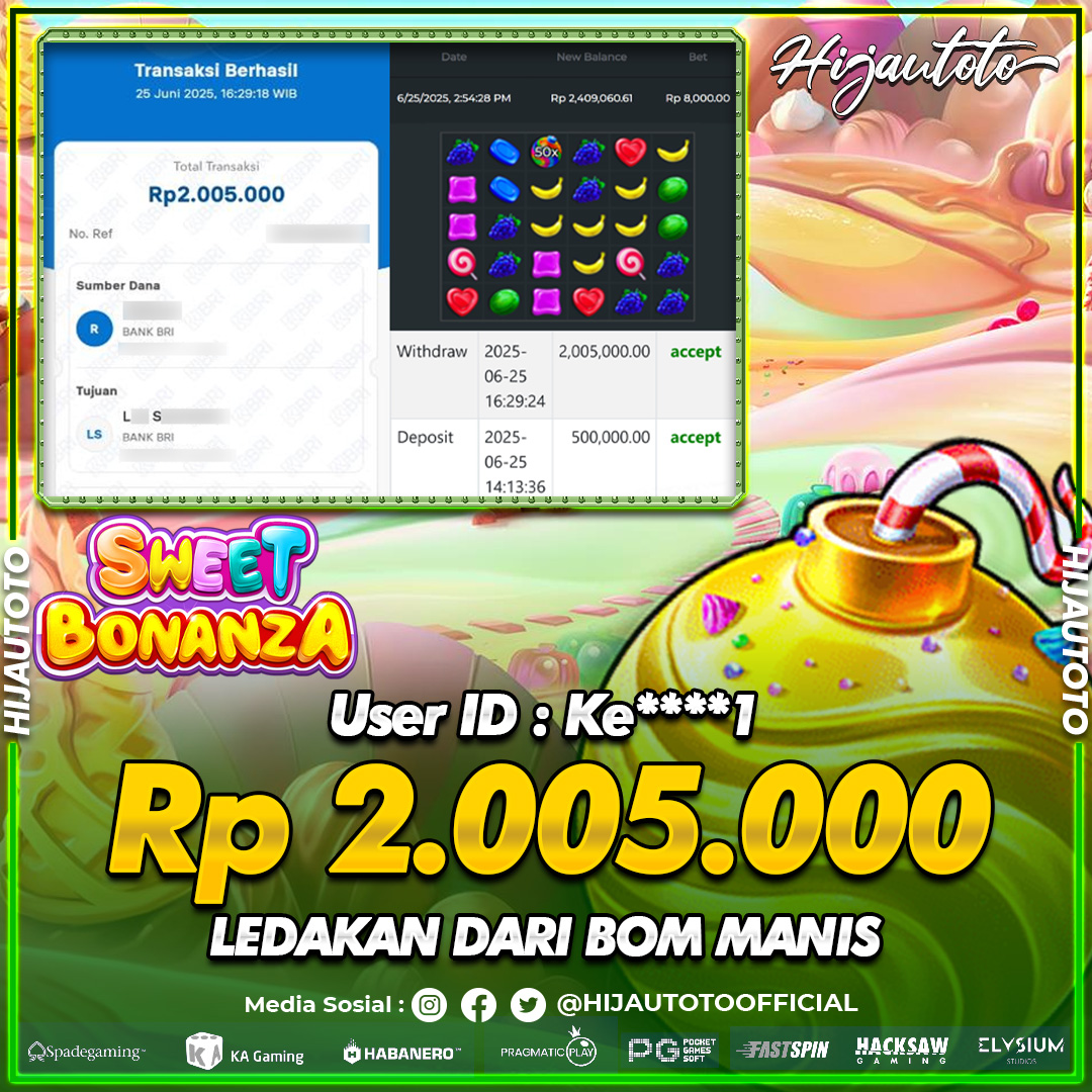 Selamat Kepada Member HIJAUTOTO KE****1 Telah Jackpot Di SLOT SWEET BONANZA