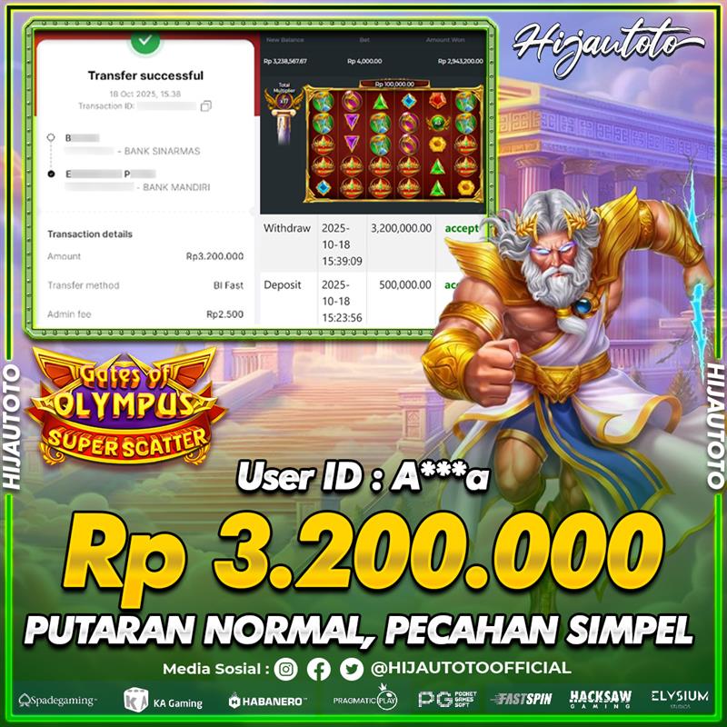 Selamat Kepada Member HIJAUTOTO A**** Telah Jackpot Di SLOT GATES OF OLYMPUS SUPER SCATTER