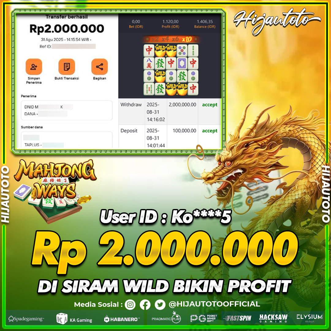 Selamat datang di HIJAUTOTO, tempatnya seru-seruan dan cuan besar! Mulai main cukup dengan modal Rp5.000 aja, taruhan super murah dari Rp100 perak! Mau main slot yang penuh warna? Atau togel dari 20 pasaran paling hits? Atau mungkin tembak ikan yang bikin deg-degan? Tenang, ada juga taruhan bola, sabung ayam, dan live casino yang bikin suasana makin hidup! Daftar sekarang dan dapetin bonus new member 100% langsung, biar modalmu makin tebal. Deposit gampang banget, bisa pakai QRIS, dan kalau butuh bantuan, customer service kita siap 24 jam nonstop. Jadi, tunggu apa lagi? Yuk, gabung dan bawa pulang kemenangannya cuma di HIJAUTOTO!