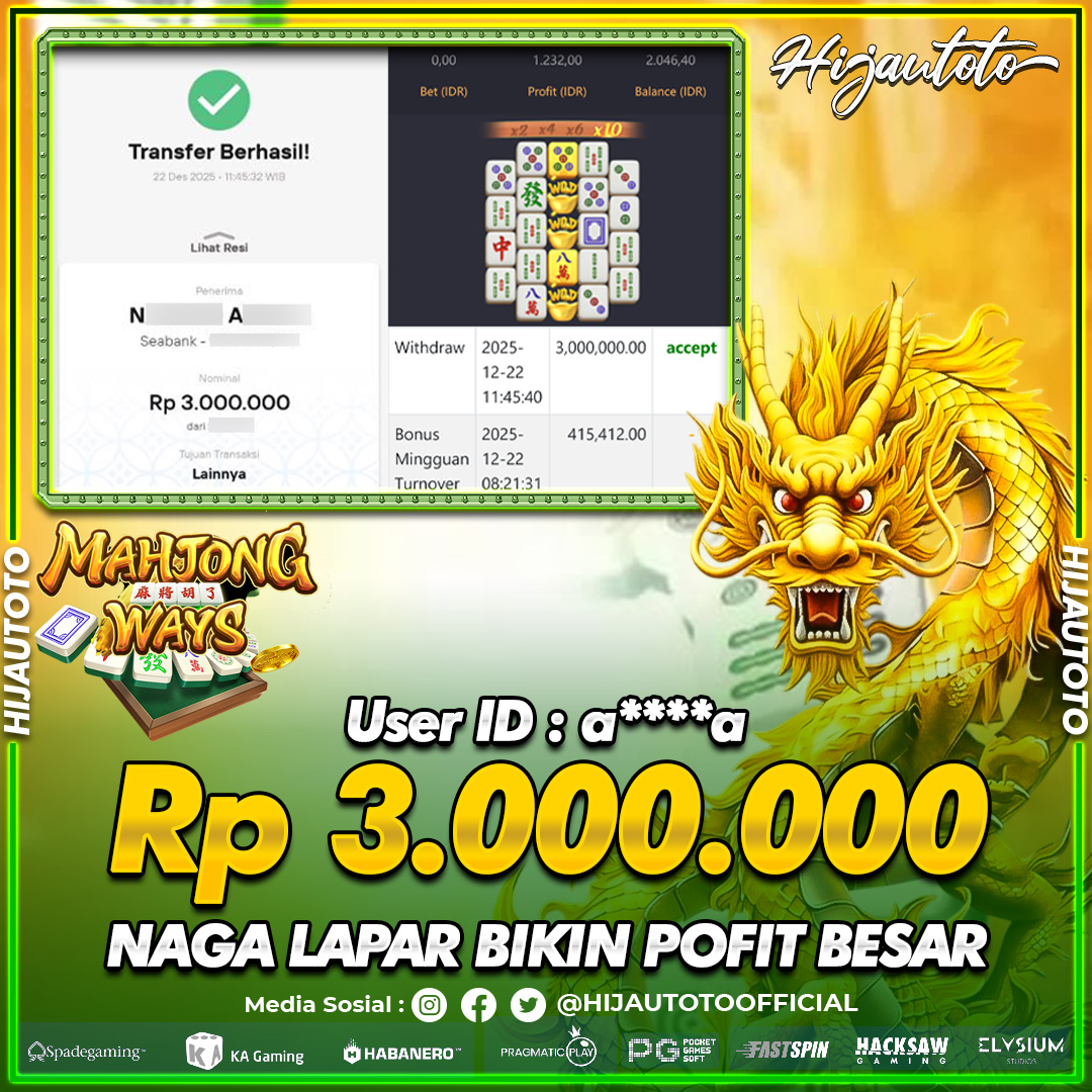 Selamat datang di HIJAUTOTO, tempatnya seru-seruan dan cuan besar! Mulai main cukup dengan modal Rp5.000 aja, taruhan super murah dari Rp100 perak! Mau main slot yang penuh warna? Atau togel dari 20 pasaran paling hits? Atau mungkin tembak ikan yang bikin deg-degan? Tenang, ada juga taruhan bola, sabung ayam, dan live casino yang bikin suasana makin hidup! Daftar sekarang dan dapetin bonus new member 100% langsung, biar modalmu makin tebal. Deposit gampang banget, bisa pakai QRIS, dan kalau butuh bantuan, customer service kita siap 24 jam nonstop. Jadi, tunggu apa lagi? Yuk, gabung dan bawa pulang kemenangannya cuma di HIJAUTOTO!