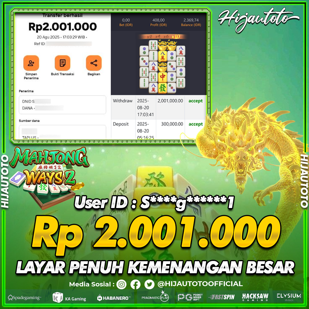 Selamat datang di HIJAUTOTO, tempatnya seru-seruan dan cuan besar! Mulai main cukup dengan modal Rp5.000 aja, taruhan super murah dari Rp100 perak! Mau main slot yang penuh warna? Atau togel dari 20 pasaran paling hits? Atau mungkin tembak ikan yang bikin deg-degan? Tenang, ada juga taruhan bola, sabung ayam, dan live casino yang bikin suasana makin hidup! Daftar sekarang dan dapetin bonus new member 100% langsung, biar modalmu makin tebal. Deposit gampang banget, bisa pakai QRIS, dan kalau butuh bantuan, customer service kita siap 24 jam nonstop. Jadi, tunggu apa lagi? Yuk, gabung dan bawa pulang kemenangannya cuma di HIJAUTOTO!