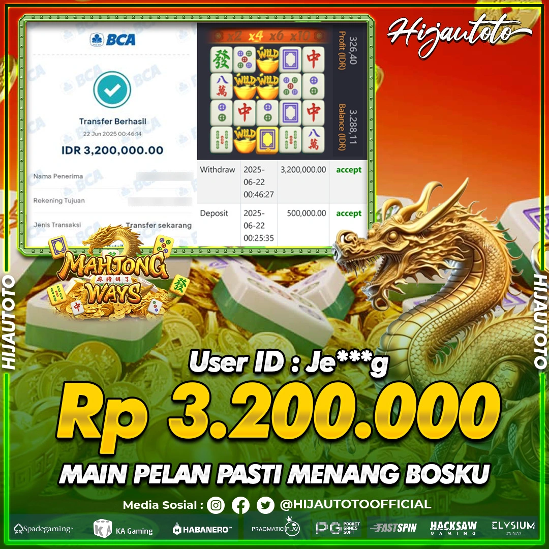 Selamat datang di HIJAUTOTO, tempatnya seru-seruan dan cuan besar! Mulai main cukup dengan modal Rp5.000 aja, taruhan super murah dari Rp100 perak! Mau main slot yang penuh warna? Atau togel dari 20 pasaran paling hits? Atau mungkin tembak ikan yang bikin deg-degan? Tenang, ada juga taruhan bola, sabung ayam, dan live casino yang bikin suasana makin hidup! Daftar sekarang dan dapetin bonus new member 100% langsung, biar modalmu makin tebal. Deposit gampang banget, bisa pakai QRIS, dan kalau butuh bantuan, customer service kita siap 24 jam nonstop. Jadi, tunggu apa lagi? Yuk, gabung dan bawa pulang kemenangannya cuma di HIJAUTOTO!