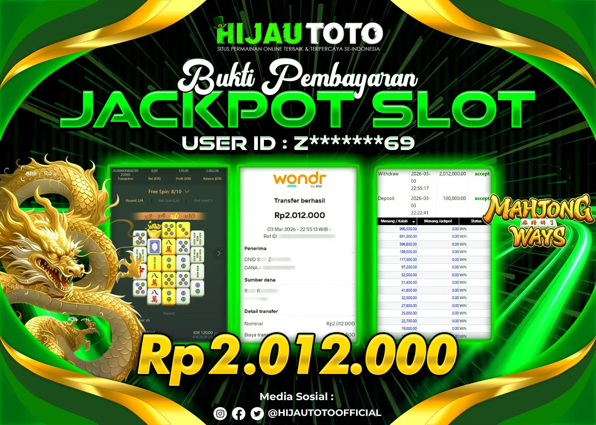 Selamat datang di HIJAUTOTO, tempatnya seru-seruan dan cuan besar! Mulai main cukup dengan modal Rp5.000 aja, taruhan super murah dari Rp100 perak! Mau main slot yang penuh warna? Atau togel dari 20 pasaran paling hits? Atau mungkin tembak ikan yang bikin deg-degan? Tenang, ada juga taruhan bola, sabung ayam, dan live casino yang bikin suasana makin hidup! Daftar sekarang dan dapetin bonus new member 100% langsung, biar modalmu makin tebal. Deposit gampang banget, bisa pakai QRIS, dan kalau butuh bantuan, customer service kita siap 24 jam nonstop. Jadi, tunggu apa lagi? Yuk, gabung dan bawa pulang kemenangannya cuma di HIJAUTOTO!