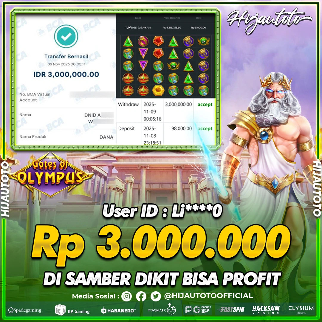β¨ JACKPOT DI SLOT GATES OF OLYMPUS 1000 β¨