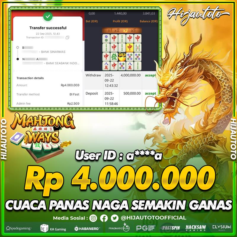 Selamat datang di HIJAUTOTO, tempatnya seru-seruan dan cuan besar! Mulai main cukup dengan modal Rp5.000 aja, taruhan super murah dari Rp100 perak! Mau main slot yang penuh warna? Atau togel dari 20 pasaran paling hits? Atau mungkin tembak ikan yang bikin deg-degan? Tenang, ada juga taruhan bola, sabung ayam, dan live casino yang bikin suasana makin hidup! Daftar sekarang dan dapetin bonus new member 100% langsung, biar modalmu makin tebal. Deposit gampang banget, bisa pakai QRIS, dan kalau butuh bantuan, customer service kita siap 24 jam nonstop. Jadi, tunggu apa lagi? Yuk, gabung dan bawa pulang kemenangannya cuma di HIJAUTOTO!