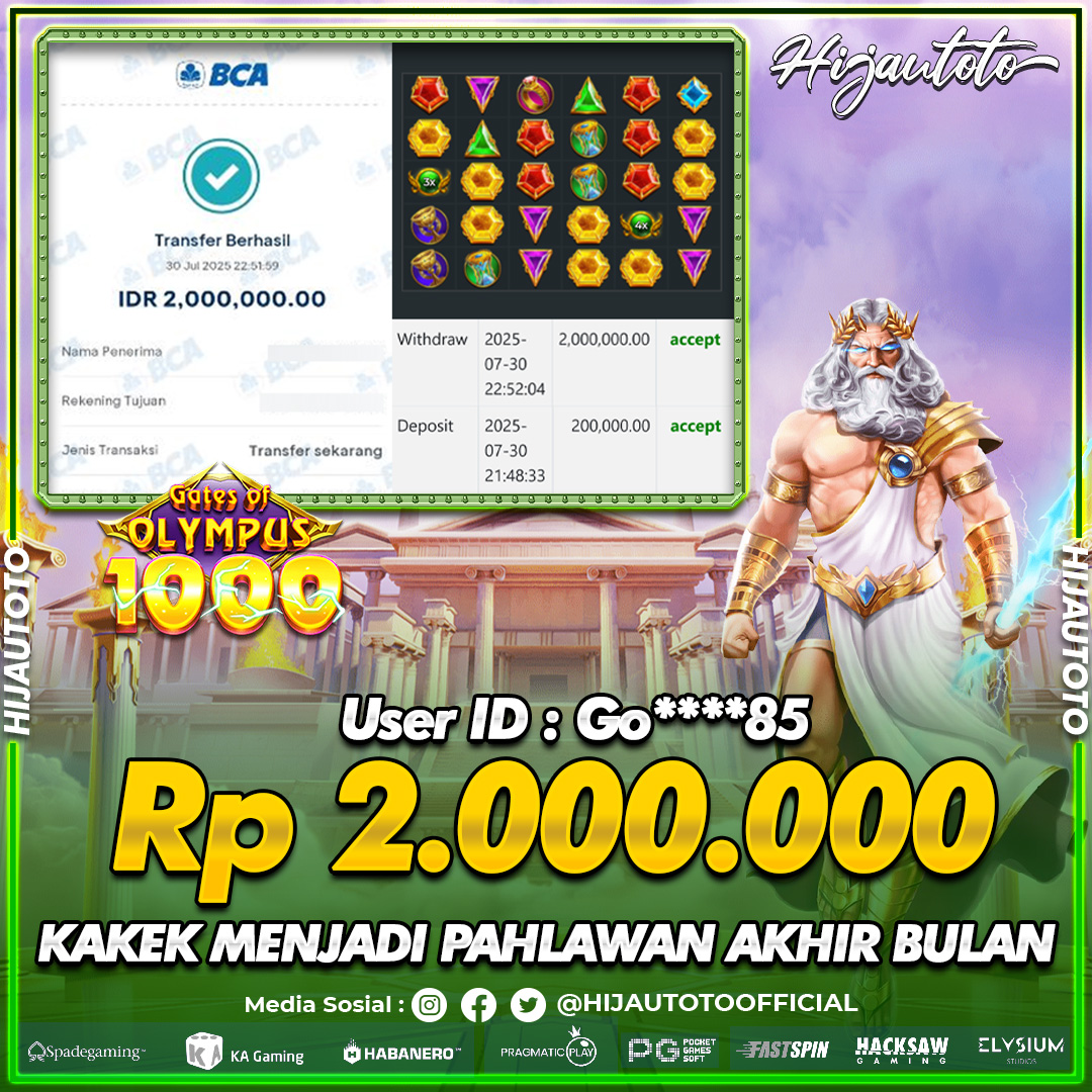 Selamat datang di HIJAUTOTO, tempatnya seru-seruan dan cuan besar! Mulai main cukup dengan modal Rp5.000 aja, taruhan super murah dari Rp100 perak! Mau main slot yang penuh warna? Atau togel dari 20 pasaran paling hits? Atau mungkin tembak ikan yang bikin deg-degan? Tenang, ada juga taruhan bola, sabung ayam, dan live casino yang bikin suasana makin hidup! Daftar sekarang dan dapetin bonus new member 100% langsung, biar modalmu makin tebal. Deposit gampang banget, bisa pakai QRIS, dan kalau butuh bantuan, customer service kita siap 24 jam nonstop. Jadi, tunggu apa lagi? Yuk, gabung dan bawa pulang kemenangannya cuma di HIJAUTOTO!