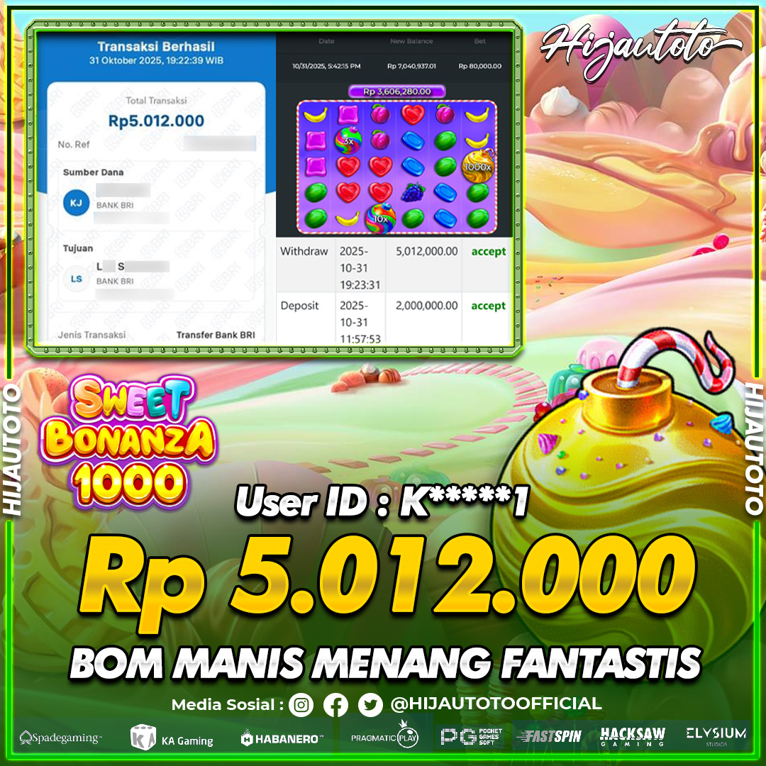 Selamat Kepada Member HIJAUTOTO K*****1 Telah Jackpot Di SLOT SWEET BONANZA 1000