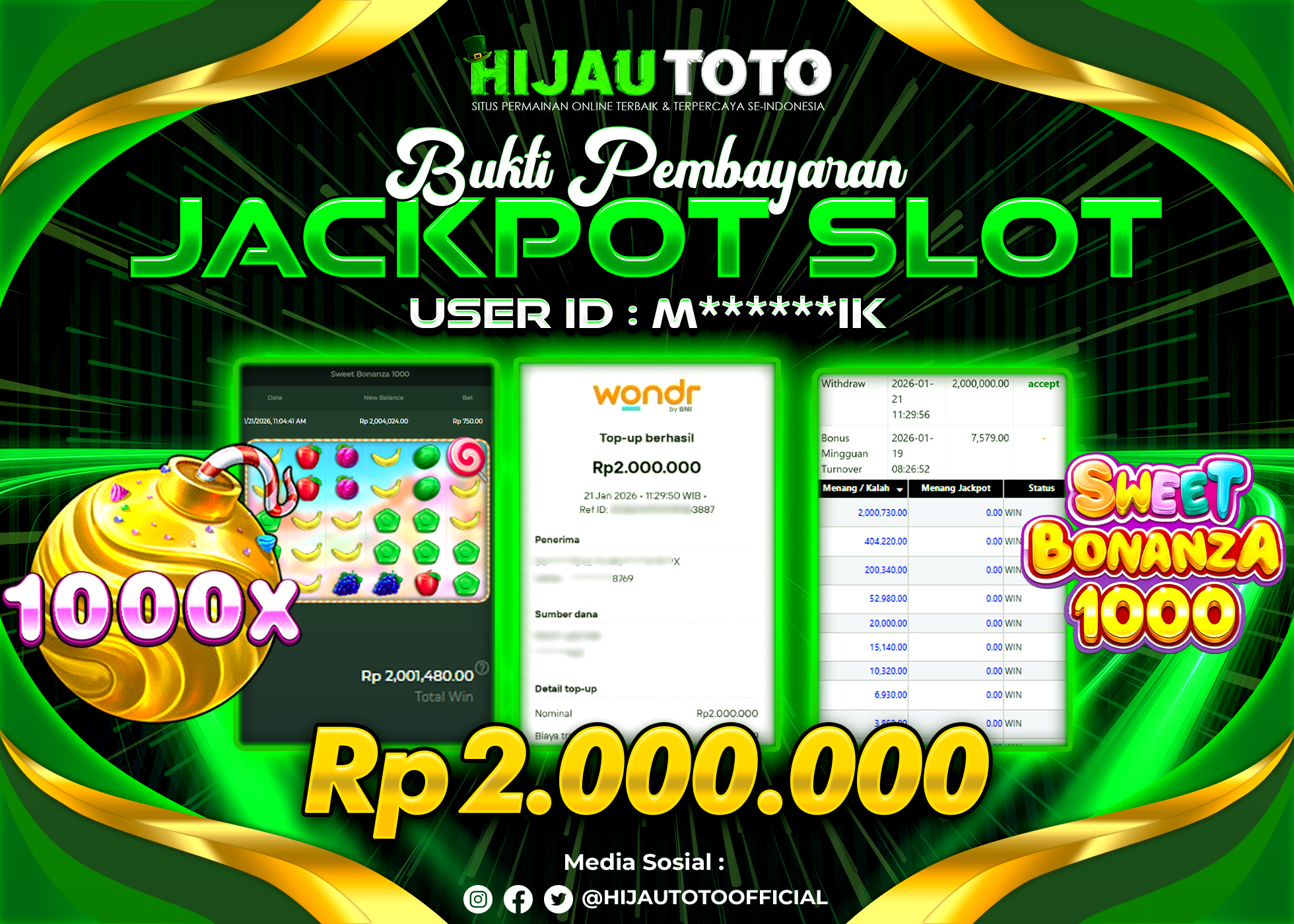 Selamat datang di HIJAUTOTO, tempatnya seru-seruan dan cuan besar! Mulai main cukup dengan modal Rp5.000 aja, taruhan super murah dari Rp100 perak! Mau main slot yang penuh warna? Atau togel dari 20 pasaran paling hits? Atau mungkin tembak ikan yang bikin deg-degan? Tenang, ada juga taruhan bola, sabung ayam, dan live casino yang bikin suasana makin hidup! Daftar sekarang dan dapetin bonus new member 100% langsung, biar modalmu makin tebal. Deposit gampang banget, bisa pakai QRIS, dan kalau butuh bantuan, customer service kita siap 24 jam nonstop. Jadi, tunggu apa lagi? Yuk, gabung dan bawa pulang kemenangannya cuma di HIJAUTOTO!