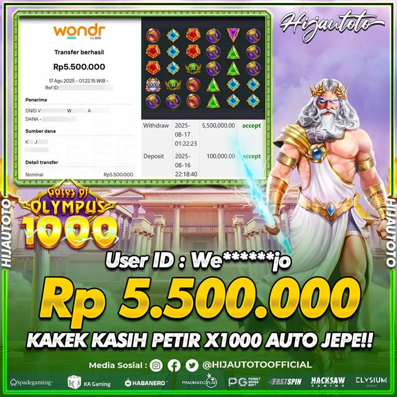 β¨ JACKPOT DI SLOT GATES OF OLYMPUS 1000 β¨