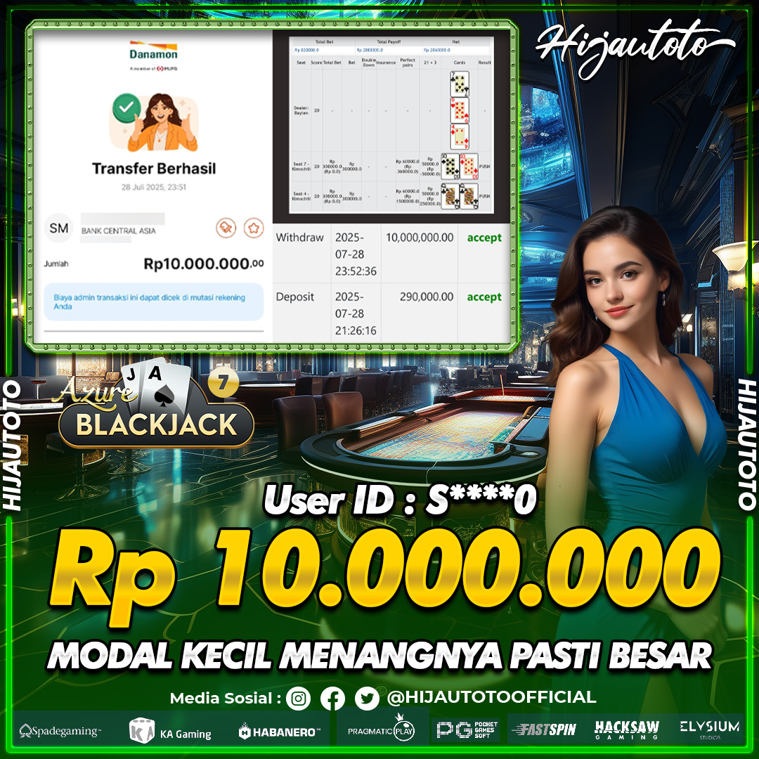 Selamat datang di HIJAUTOTO, tempatnya seru-seruan dan cuan besar! Mulai main cukup dengan modal Rp5.000 aja, taruhan super murah dari Rp100 perak! Mau main slot yang penuh warna? Atau togel dari 20 pasaran paling hits? Atau mungkin tembak ikan yang bikin deg-degan? Tenang, ada juga taruhan bola, sabung ayam, dan live casino yang bikin suasana makin hidup! Daftar sekarang dan dapetin bonus new member 100% langsung, biar modalmu makin tebal. Deposit gampang banget, bisa pakai QRIS, dan kalau butuh bantuan, customer service kita siap 24 jam nonstop. Jadi, tunggu apa lagi? Yuk, gabung dan bawa pulang kemenangannya cuma di HIJAUTOTO!