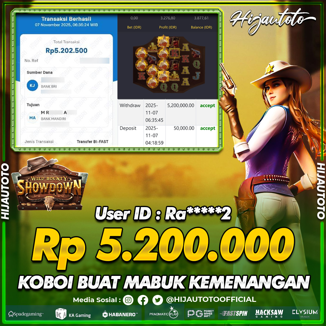 Selamat datang di HIJAUTOTO, tempatnya seru-seruan dan cuan besar! Mulai main cukup dengan modal Rp5.000 aja, taruhan super murah dari Rp100 perak! Mau main slot yang penuh warna? Atau togel dari 20 pasaran paling hits? Atau mungkin tembak ikan yang bikin deg-degan? Tenang, ada juga taruhan bola, sabung ayam, dan live casino yang bikin suasana makin hidup! Daftar sekarang dan dapetin bonus new member 100% langsung, biar modalmu makin tebal. Deposit gampang banget, bisa pakai QRIS, dan kalau butuh bantuan, customer service kita siap 24 jam nonstop. Jadi, tunggu apa lagi? Yuk, gabung dan bawa pulang kemenangannya cuma di HIJAUTOTO!