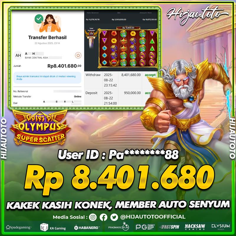 Karena berhasil memenangkan Rp.Rp.2.000.000 dari permainan seru SLOT GATES OF OLYMPUS SUPER SCATTER di HIJAUTOTO! πŸ’°πŸ’Έ