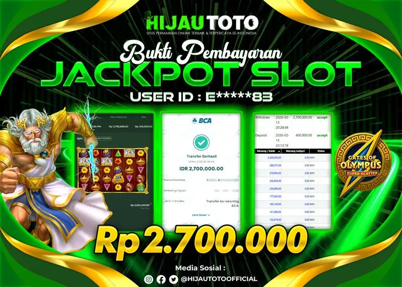 Selamat datang di HIJAUTOTO, tempatnya seru-seruan dan cuan besar! Mulai main cukup dengan modal Rp5.000 aja, taruhan super murah dari Rp100 perak! Mau main slot yang penuh warna? Atau togel dari 20 pasaran paling hits? Atau mungkin tembak ikan yang bikin deg-degan? Tenang, ada juga taruhan bola, sabung ayam, dan live casino yang bikin suasana makin hidup! Daftar sekarang dan dapetin bonus new member 100% langsung, biar modalmu makin tebal. Deposit gampang banget, bisa pakai QRIS, dan kalau butuh bantuan, customer service kita siap 24 jam nonstop. Jadi, tunggu apa lagi? Yuk, gabung dan bawa pulang kemenangannya cuma di HIJAUTOTO!