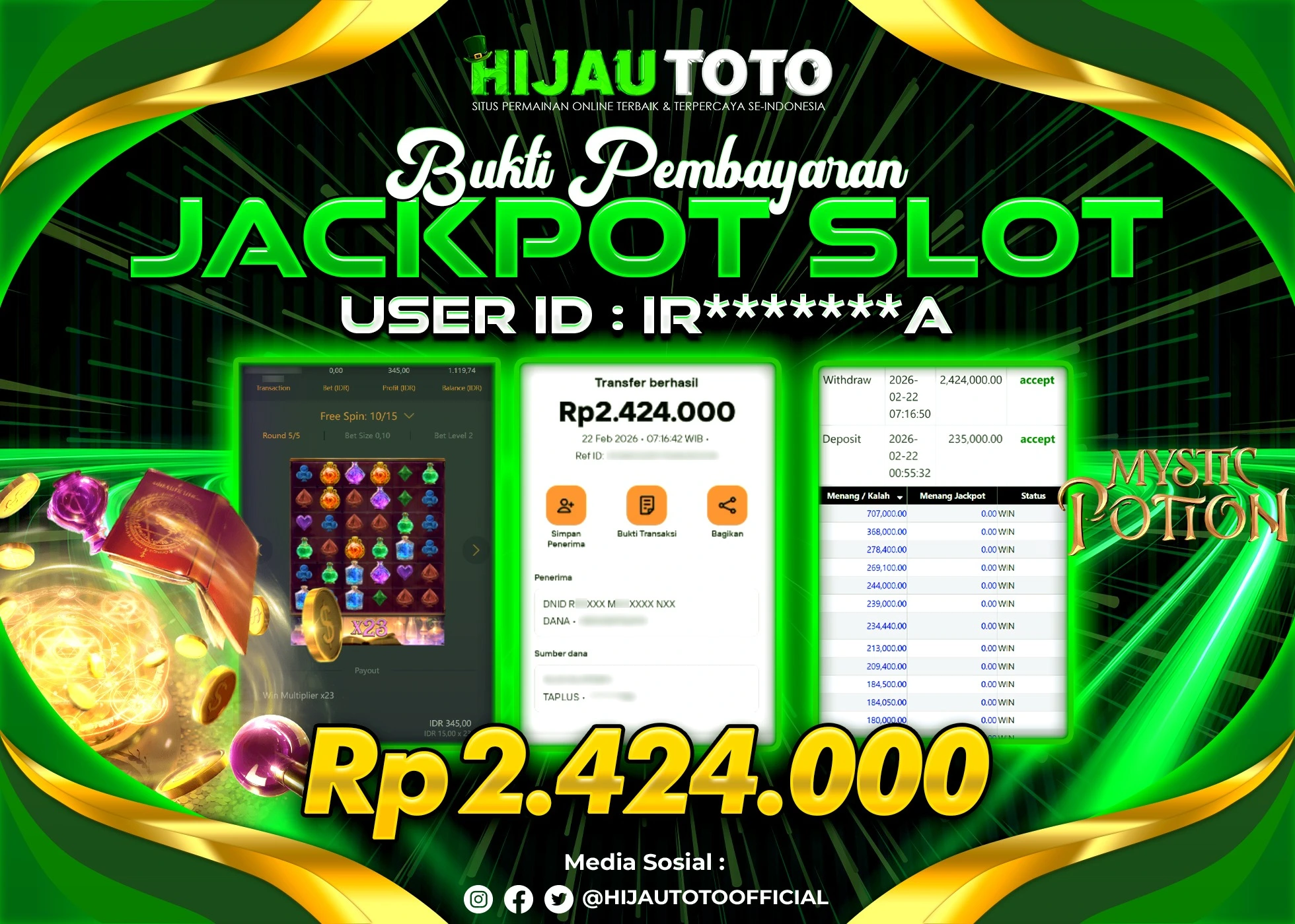 β¨ JACKPOT DI SLOT MYSTIC POTION β¨