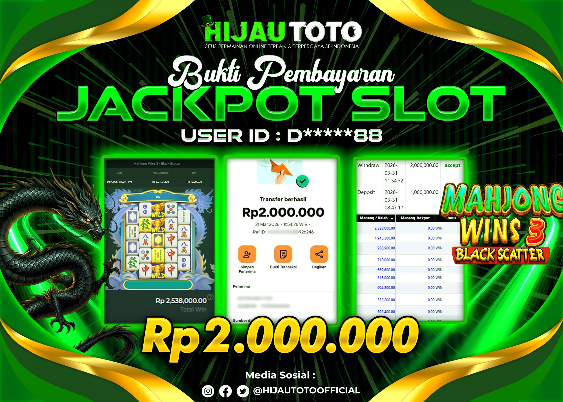 Bergabung dengan HIJAUTOTO sangat mudah dan cepat. Cukup lakukan pendaftaran dengan data lengkap, lakukan deposit minimal Rp5.000 melalui berbagai metode termasuk QRIS, dan mulai bertaruh dengan minimal taruhan Rp100. Dapatkan juga bonus new member 100% untuk modal bermain lebih besar.