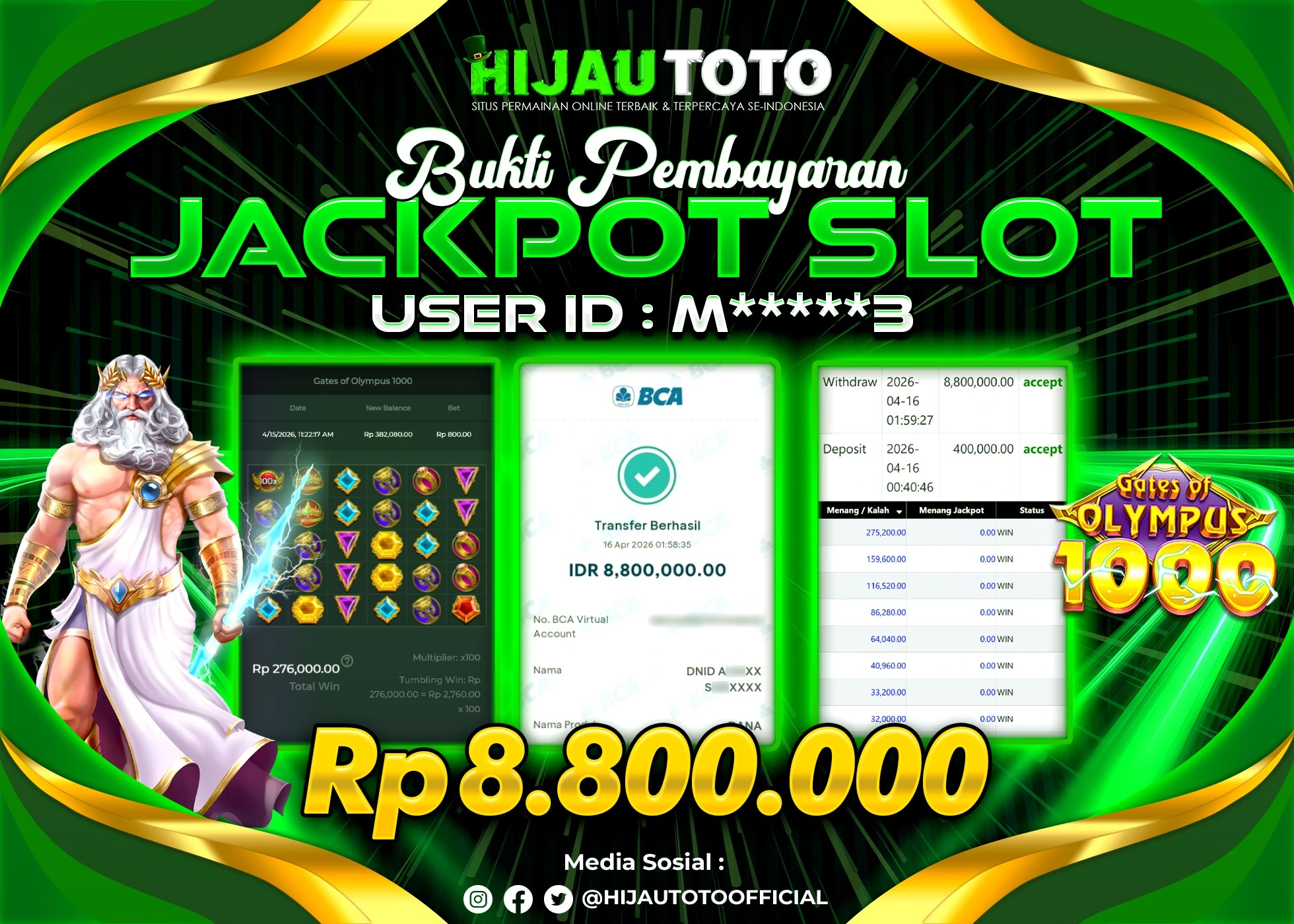 Bergabung dengan HIJAUTOTO sangat mudah dan cepat. Cukup lakukan pendaftaran dengan data lengkap, lakukan deposit minimal Rp5.000 melalui berbagai metode termasuk QRIS, dan mulai bertaruh dengan minimal taruhan Rp100. Dapatkan juga bonus new member 100% untuk modal bermain lebih besar.