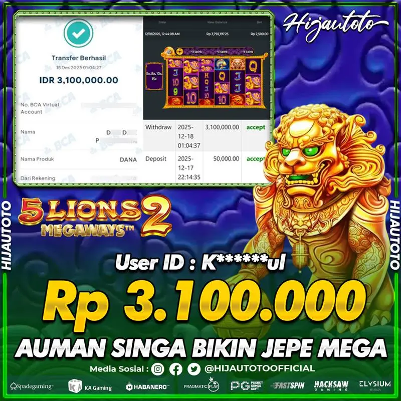 β¨ JACKPOT DI SLOT 5 LIONS MEGAWAYS 2 β¨