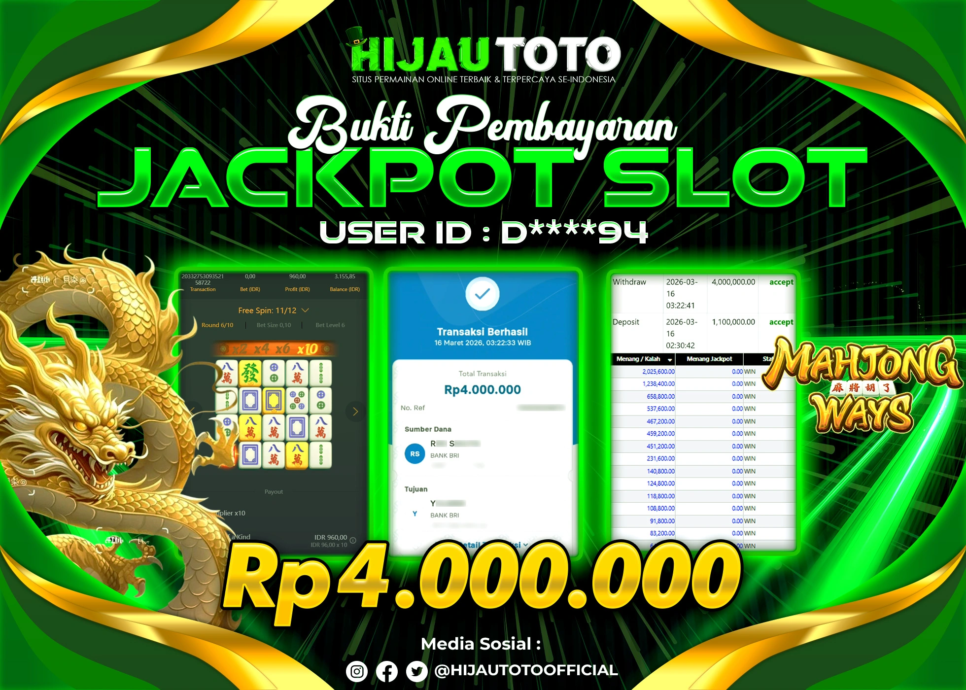 Bergabung dengan HIJAUTOTO sangat mudah dan cepat. Cukup lakukan pendaftaran dengan data lengkap, lakukan deposit minimal Rp5.000 melalui berbagai metode termasuk QRIS, dan mulai bertaruh dengan minimal taruhan Rp100. Dapatkan juga bonus new member 100% untuk modal bermain lebih besar.