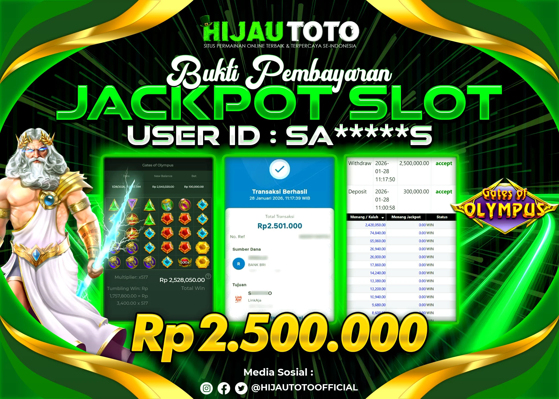 Bergabung dengan HIJAUTOTO sangat mudah dan cepat. Cukup lakukan pendaftaran dengan data lengkap, lakukan deposit minimal Rp5.000 melalui berbagai metode termasuk QRIS, dan mulai bertaruh dengan minimal taruhan Rp100. Dapatkan juga bonus new member 100% untuk modal bermain lebih besar.