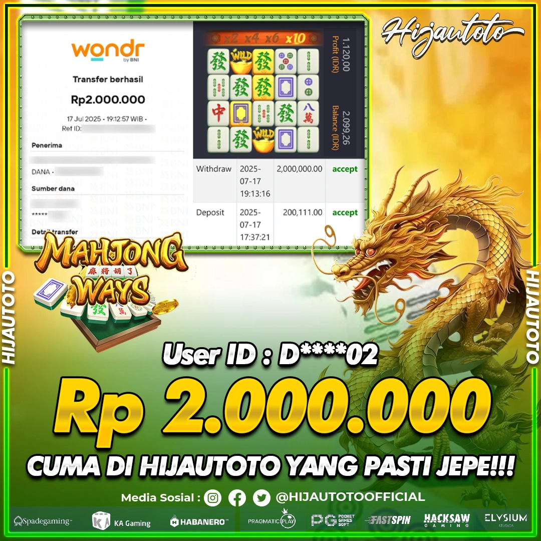 Selamat datang di HIJAUTOTO, tempatnya seru-seruan dan cuan besar! Mulai main cukup dengan modal Rp5.000 aja, taruhan super murah dari Rp100 perak! Mau main slot yang penuh warna? Atau togel dari 20 pasaran paling hits? Atau mungkin tembak ikan yang bikin deg-degan? Tenang, ada juga taruhan bola, sabung ayam, dan live casino yang bikin suasana makin hidup! Daftar sekarang dan dapetin bonus new member 100% langsung, biar modalmu makin tebal. Deposit gampang banget, bisa pakai QRIS, dan kalau butuh bantuan, customer service kita siap 24 jam nonstop. Jadi, tunggu apa lagi? Yuk, gabung dan bawa pulang kemenangannya cuma di HIJAUTOTO!