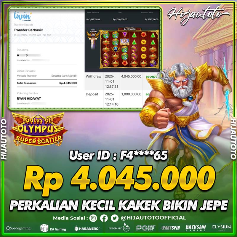 Selamat datang di HIJAUTOTO, tempatnya seru-seruan dan cuan besar! Mulai main cukup dengan modal Rp5.000 aja, taruhan super murah dari Rp100 perak! Mau main slot yang penuh warna? Atau togel dari 20 pasaran paling hits? Atau mungkin tembak ikan yang bikin deg-degan? Tenang, ada juga taruhan bola, sabung ayam, dan live casino yang bikin suasana makin hidup! Daftar sekarang dan dapetin bonus new member 100% langsung, biar modalmu makin tebal. Deposit gampang banget, bisa pakai QRIS, dan kalau butuh bantuan, customer service kita siap 24 jam nonstop. Jadi, tunggu apa lagi? Yuk, gabung dan bawa pulang kemenangannya cuma di HIJAUTOTO!