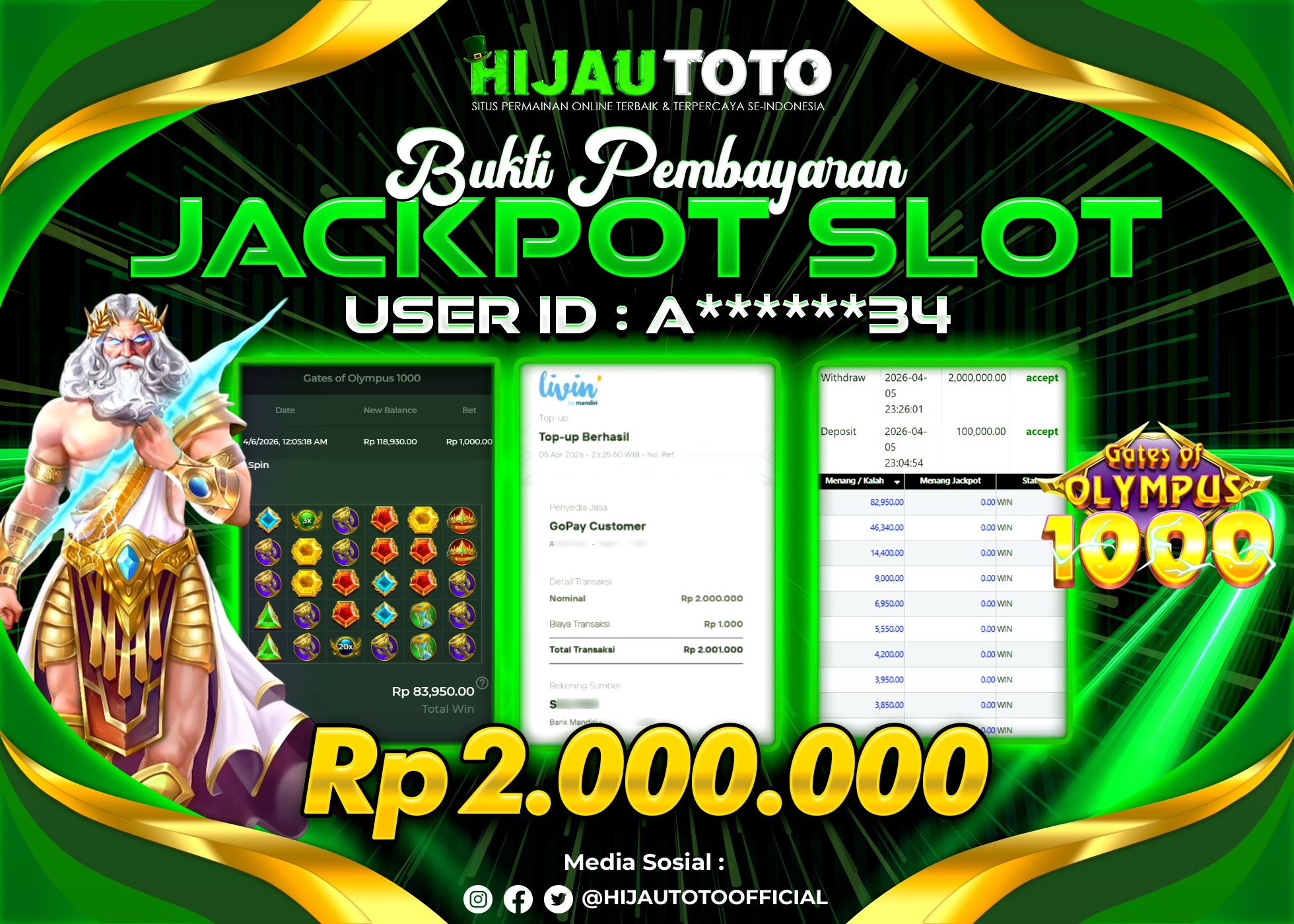 Selamat datang di HIJAUTOTO, tempatnya seru-seruan dan cuan besar! Mulai main cukup dengan modal Rp5.000 aja, taruhan super murah dari Rp100 perak! Mau main slot yang penuh warna? Atau togel dari 20 pasaran paling hits? Atau mungkin tembak ikan yang bikin deg-degan? Tenang, ada juga taruhan bola, sabung ayam, dan live casino yang bikin suasana makin hidup! Daftar sekarang dan dapetin bonus new member 100% langsung, biar modalmu makin tebal. Deposit gampang banget, bisa pakai QRIS, dan kalau butuh bantuan, customer service kita siap 24 jam nonstop. Jadi, tunggu apa lagi? Yuk, gabung dan bawa pulang kemenangannya cuma di HIJAUTOTO!