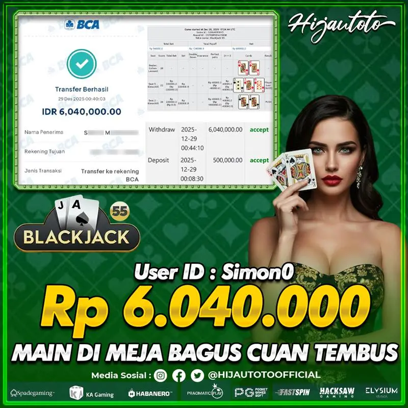 Nikmati pengalaman bermain casino langsung dari dealer profesional dalam fitur Live Casino HIJAUTOTO. Bermain blackjack, roulette, baccarat, dan permainan casino klasik lainnya secara real-time dengan suasana yang autentik dan interaktif.