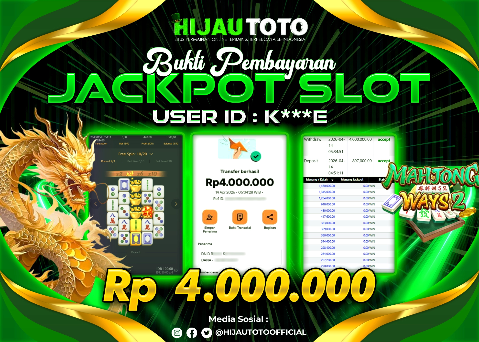 Selamat datang di HIJAUTOTO, tempatnya seru-seruan dan cuan besar! Mulai main cukup dengan modal Rp5.000 aja, taruhan super murah dari Rp100 perak! Mau main slot yang penuh warna? Atau togel dari 20 pasaran paling hits? Atau mungkin tembak ikan yang bikin deg-degan? Tenang, ada juga taruhan bola, sabung ayam, dan live casino yang bikin suasana makin hidup! Daftar sekarang dan dapetin bonus new member 100% langsung, biar modalmu makin tebal. Deposit gampang banget, bisa pakai QRIS, dan kalau butuh bantuan, customer service kita siap 24 jam nonstop. Jadi, tunggu apa lagi? Yuk, gabung dan bawa pulang kemenangannya cuma di HIJAUTOTO!