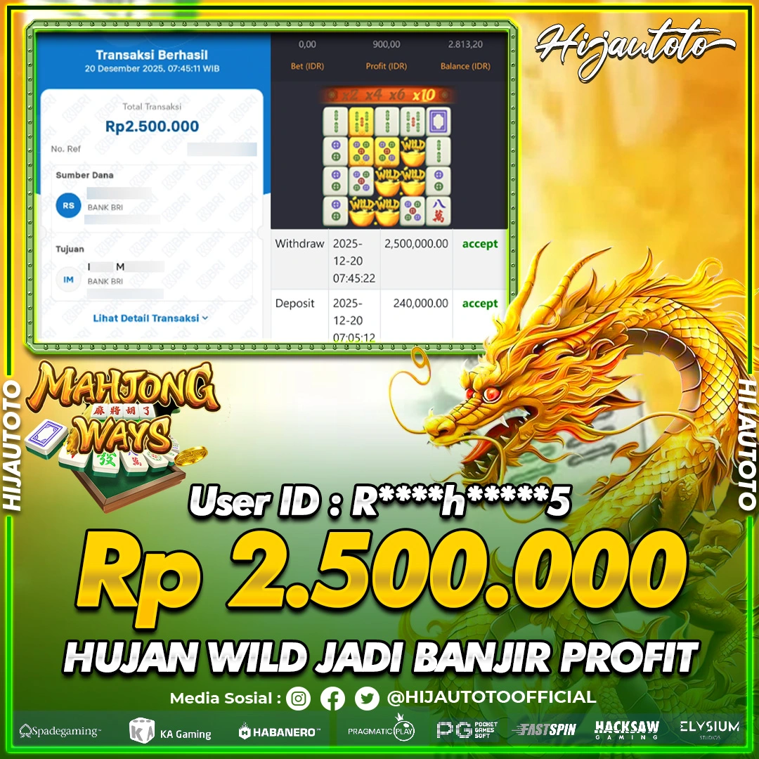 Selamat Kepada Member HIJAUTOTO R**********5 Telah Jackpot Di SLOT MAHJONG WAYS