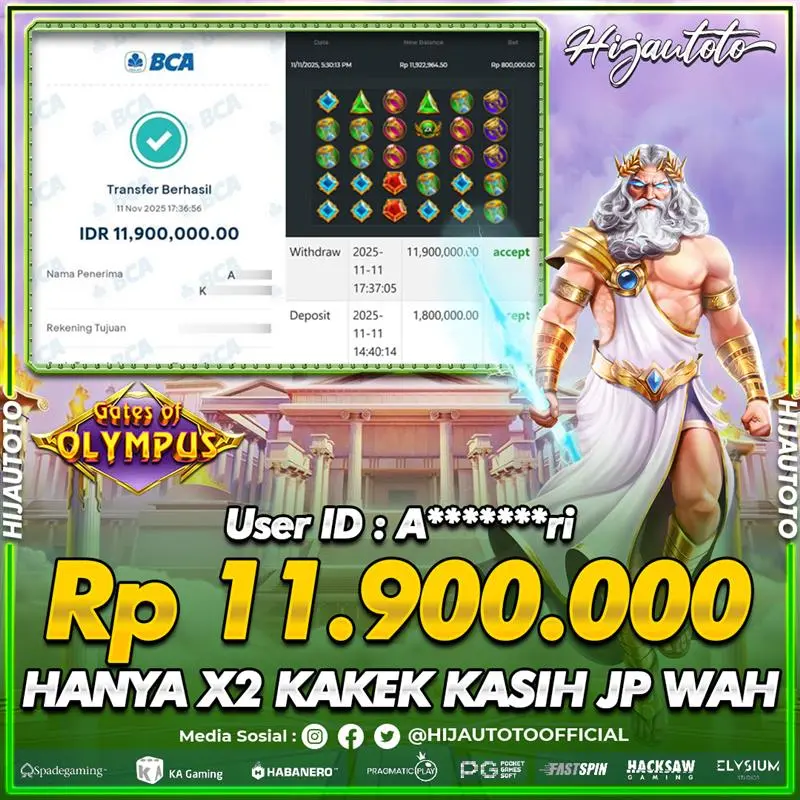 Karena berhasil memenangkan Rp.Rp.3.000.000 dari permainan seru SLOT GATES OF OLYMPUS SUPER SCATTER di HIJAUTOTO! πŸ’°πŸ’Έ