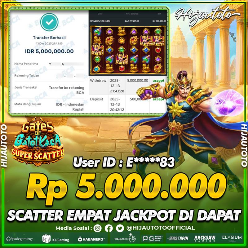 Selamat Kepada Member HIJAUTOTO E*****83 Telah Jackpot Di SLOT GATES OF GATOT KACA SUPER SCATTER