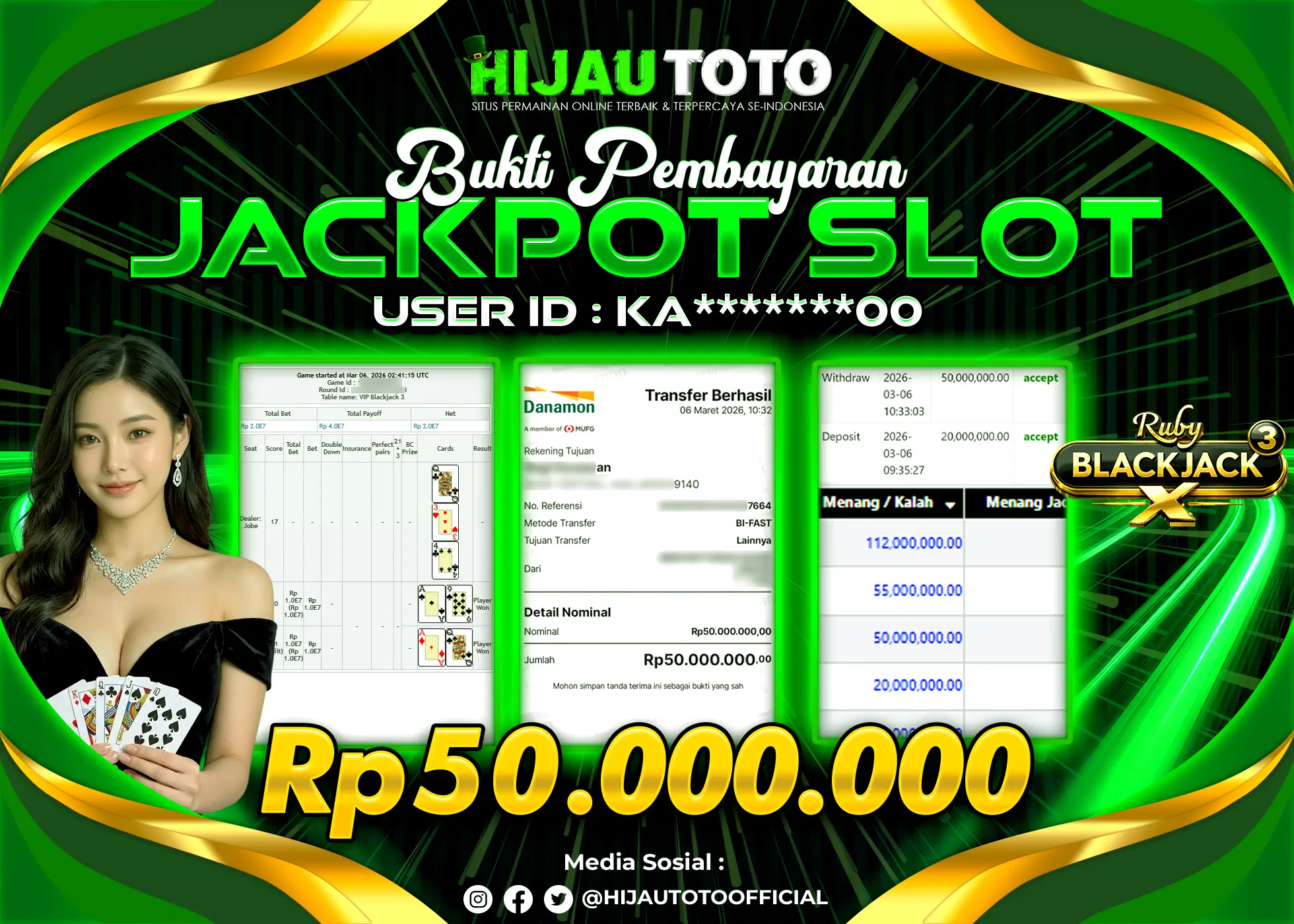 Selamat Kepada Member HIJAUTOTO KA*******00 Telah Jackpot Di LIVE CASINO BLACKJACK 3 RUBY