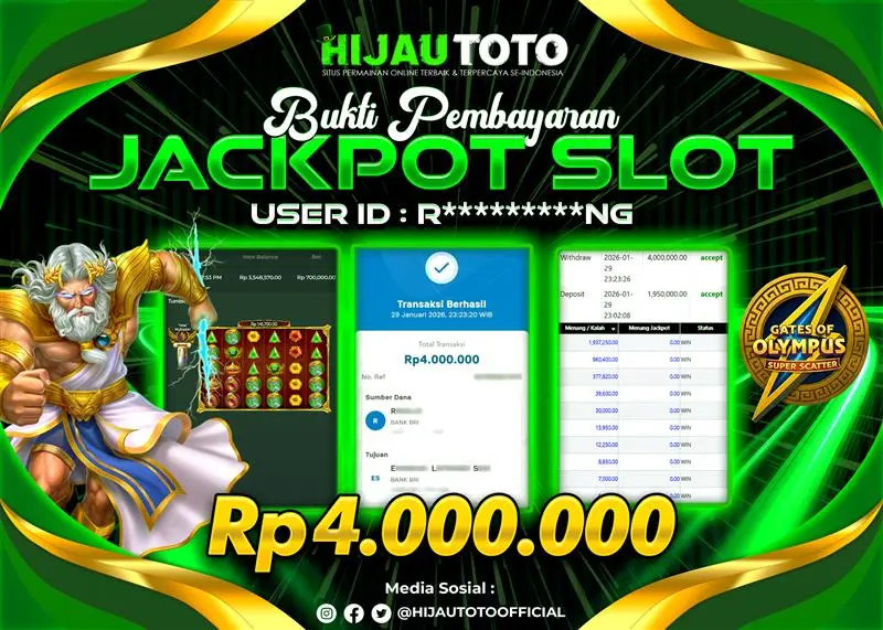 Selamat datang di HIJAUTOTO, tempatnya seru-seruan dan cuan besar! Mulai main cukup dengan modal Rp5.000 aja, taruhan super murah dari Rp100 perak! Mau main slot yang penuh warna? Atau togel dari 20 pasaran paling hits? Atau mungkin tembak ikan yang bikin deg-degan? Tenang, ada juga taruhan bola, sabung ayam, dan live casino yang bikin suasana makin hidup! Daftar sekarang dan dapetin bonus new member 100% langsung, biar modalmu makin tebal. Deposit gampang banget, bisa pakai QRIS, dan kalau butuh bantuan, customer service kita siap 24 jam nonstop. Jadi, tunggu apa lagi? Yuk, gabung dan bawa pulang kemenangannya cuma di HIJAUTOTO!