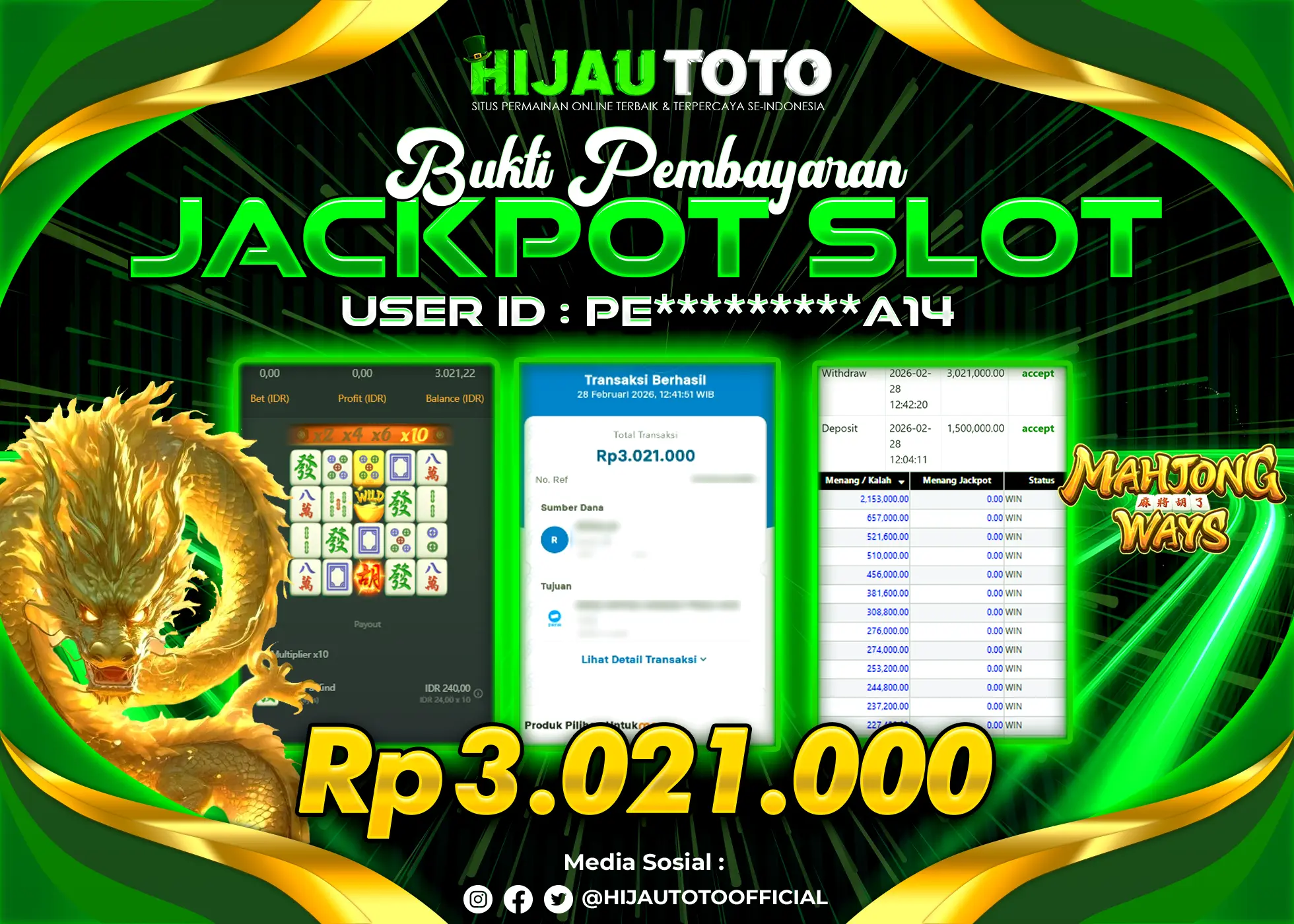 Selamat datang di HIJAUTOTO, tempatnya seru-seruan dan cuan besar! Mulai main cukup dengan modal Rp5.000 aja, taruhan super murah dari Rp100 perak! Mau main slot yang penuh warna? Atau togel dari 20 pasaran paling hits? Atau mungkin tembak ikan yang bikin deg-degan? Tenang, ada juga taruhan bola, sabung ayam, dan live casino yang bikin suasana makin hidup! Daftar sekarang dan dapetin bonus new member 100% langsung, biar modalmu makin tebal. Deposit gampang banget, bisa pakai QRIS, dan kalau butuh bantuan, customer service kita siap 24 jam nonstop. Jadi, tunggu apa lagi? Yuk, gabung dan bawa pulang kemenangannya cuma di HIJAUTOTO!