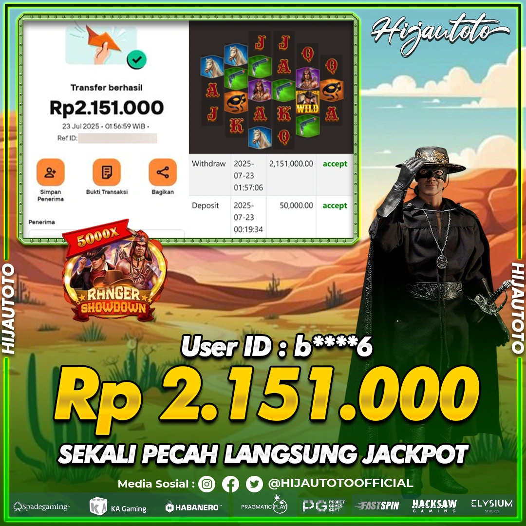Selamat Kepada Member HIJAUTOTO B****6 Telah Jackpot Di SLOT RANGER SHOWDOWN