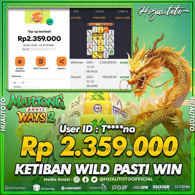 Karena berhasil memenangkan Rp.Rp.2.600.000 dari permainan seru SLOT MAHJONG WAYS di HIJAUTOTO! πŸ’°πŸ’Έ