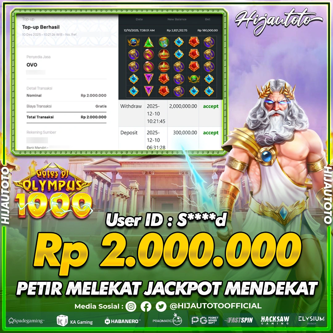 Selamat Kepada Member HIJAUTOTO A*****45 Telah Jackpot Di SLOT GATES OF OLYMPUS 1000