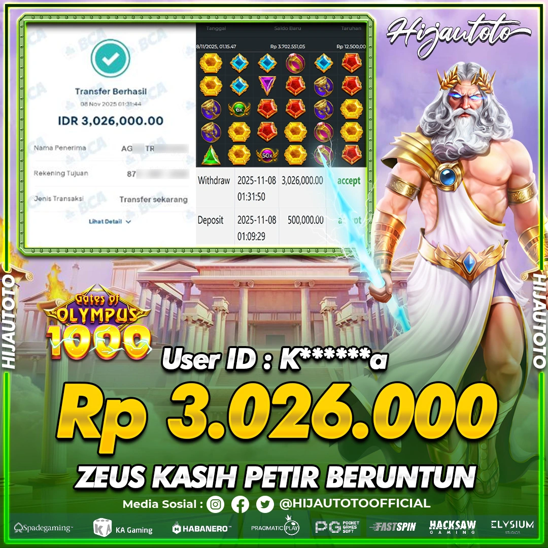 β¨ JACKPOT DI SLOT GATES OF OLYMPUS 1000 β¨