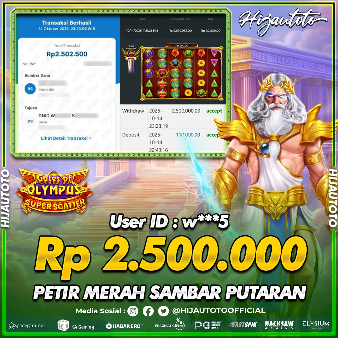 Karena berhasil memenangkan Rp.Rp.4.000.000 dari permainan seru SLOT GATES OF OLYMPUS SUPER SCATTER di HIJAUTOTO! πŸ’°πŸ’Έ