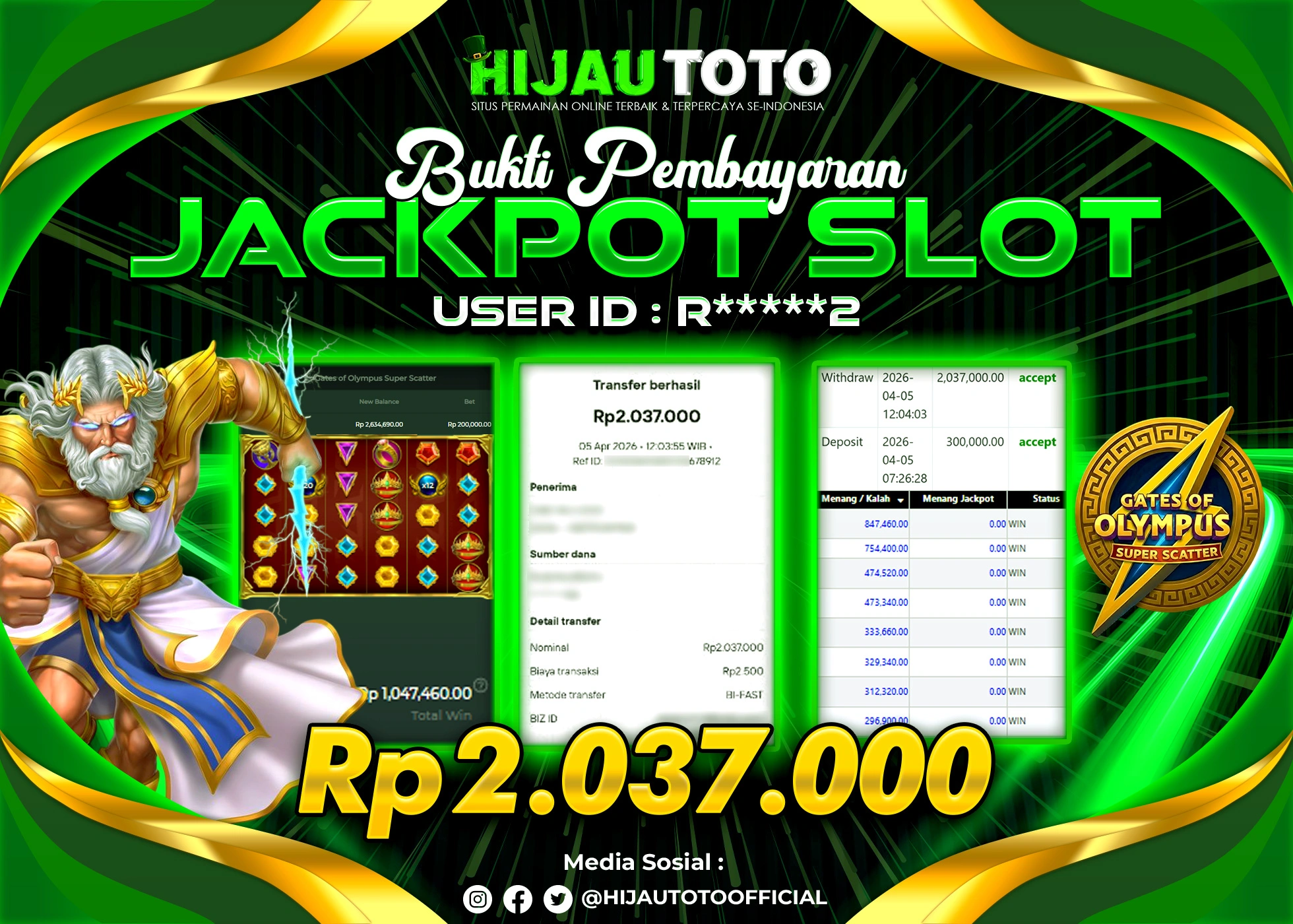 Bergabung dengan HIJAUTOTO sangat mudah dan cepat. Cukup lakukan pendaftaran dengan data lengkap, lakukan deposit minimal Rp5.000 melalui berbagai metode termasuk QRIS, dan mulai bertaruh dengan minimal taruhan Rp100. Dapatkan juga bonus new member 100% untuk modal bermain lebih besar.