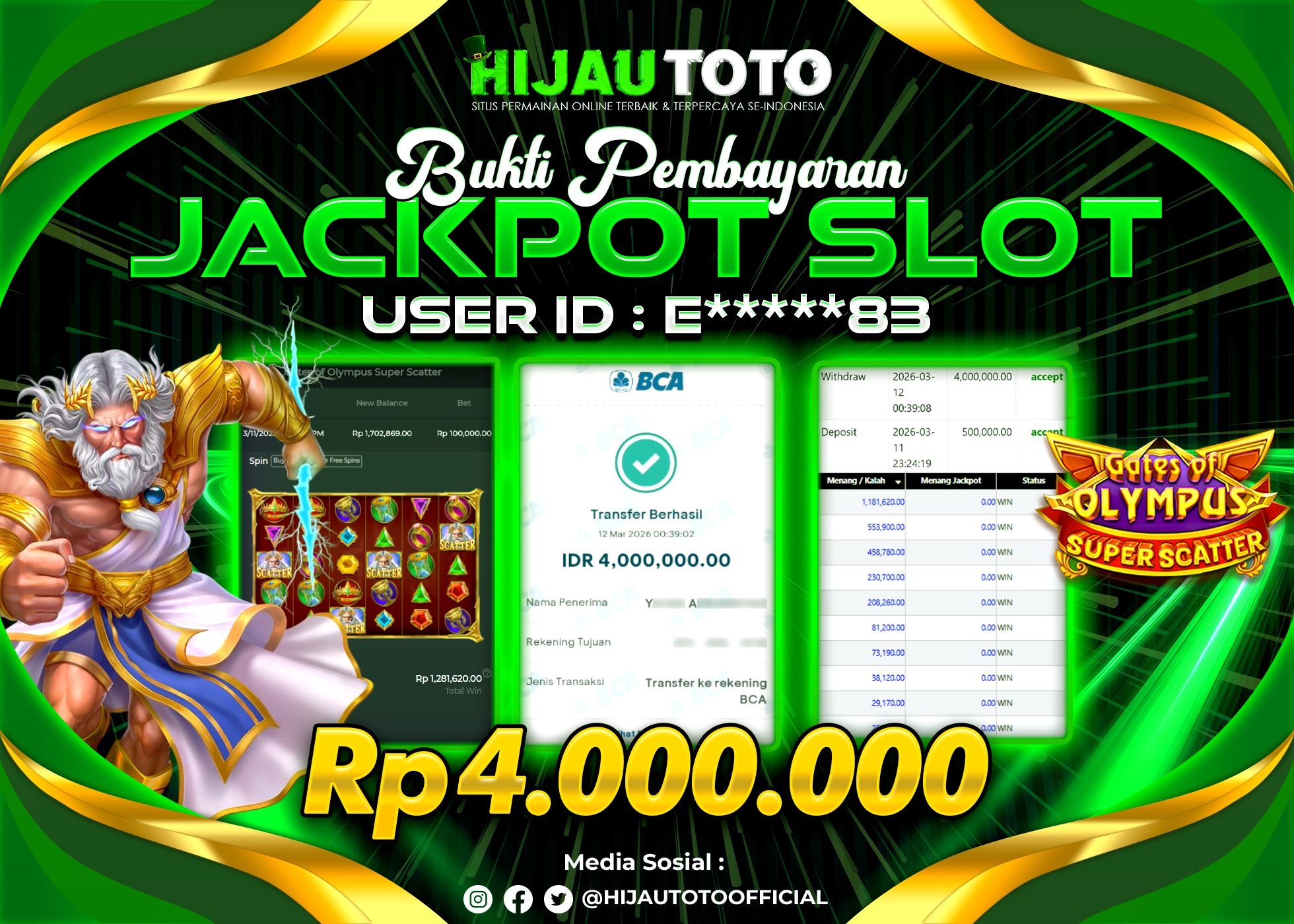 Selamat datang di HIJAUTOTO, tempatnya seru-seruan dan cuan besar! Mulai main cukup dengan modal Rp5.000 aja, taruhan super murah dari Rp100 perak! Mau main slot yang penuh warna? Atau togel dari 20 pasaran paling hits? Atau mungkin tembak ikan yang bikin deg-degan? Tenang, ada juga taruhan bola, sabung ayam, dan live casino yang bikin suasana makin hidup! Daftar sekarang dan dapetin bonus new member 100% langsung, biar modalmu makin tebal. Deposit gampang banget, bisa pakai QRIS, dan kalau butuh bantuan, customer service kita siap 24 jam nonstop. Jadi, tunggu apa lagi? Yuk, gabung dan bawa pulang kemenangannya cuma di HIJAUTOTO!