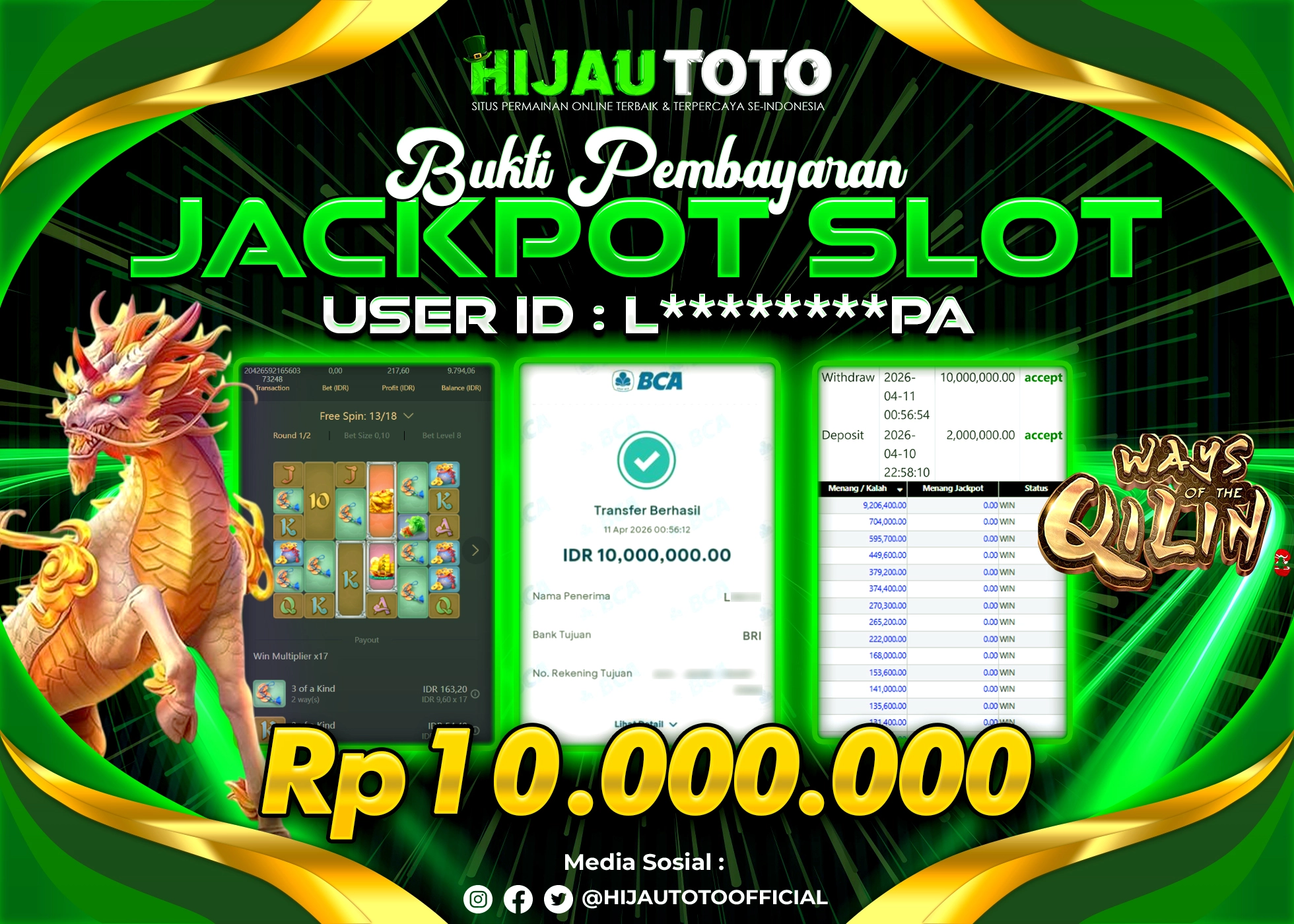 β¨ JACKPOT DI SLOT WAYS OF THE QILIN β¨