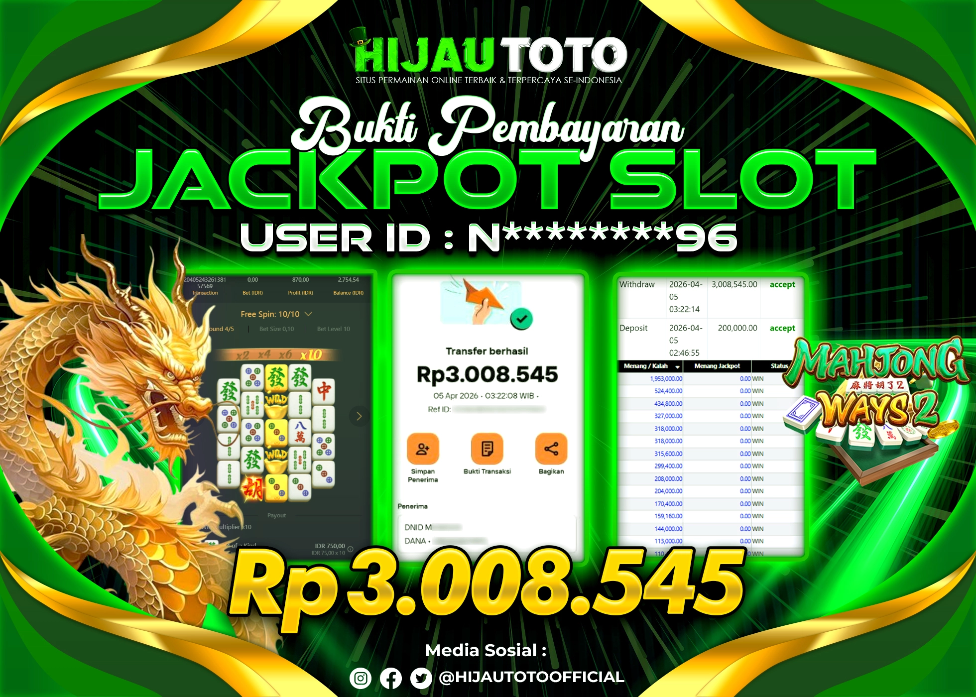 Selamat datang di HIJAUTOTO, tempatnya seru-seruan dan cuan besar! Mulai main cukup dengan modal Rp5.000 aja, taruhan super murah dari Rp100 perak! Mau main slot yang penuh warna? Atau togel dari 20 pasaran paling hits? Atau mungkin tembak ikan yang bikin deg-degan? Tenang, ada juga taruhan bola, sabung ayam, dan live casino yang bikin suasana makin hidup! Daftar sekarang dan dapetin bonus new member 100% langsung, biar modalmu makin tebal. Deposit gampang banget, bisa pakai QRIS, dan kalau butuh bantuan, customer service kita siap 24 jam nonstop. Jadi, tunggu apa lagi? Yuk, gabung dan bawa pulang kemenangannya cuma di HIJAUTOTO!