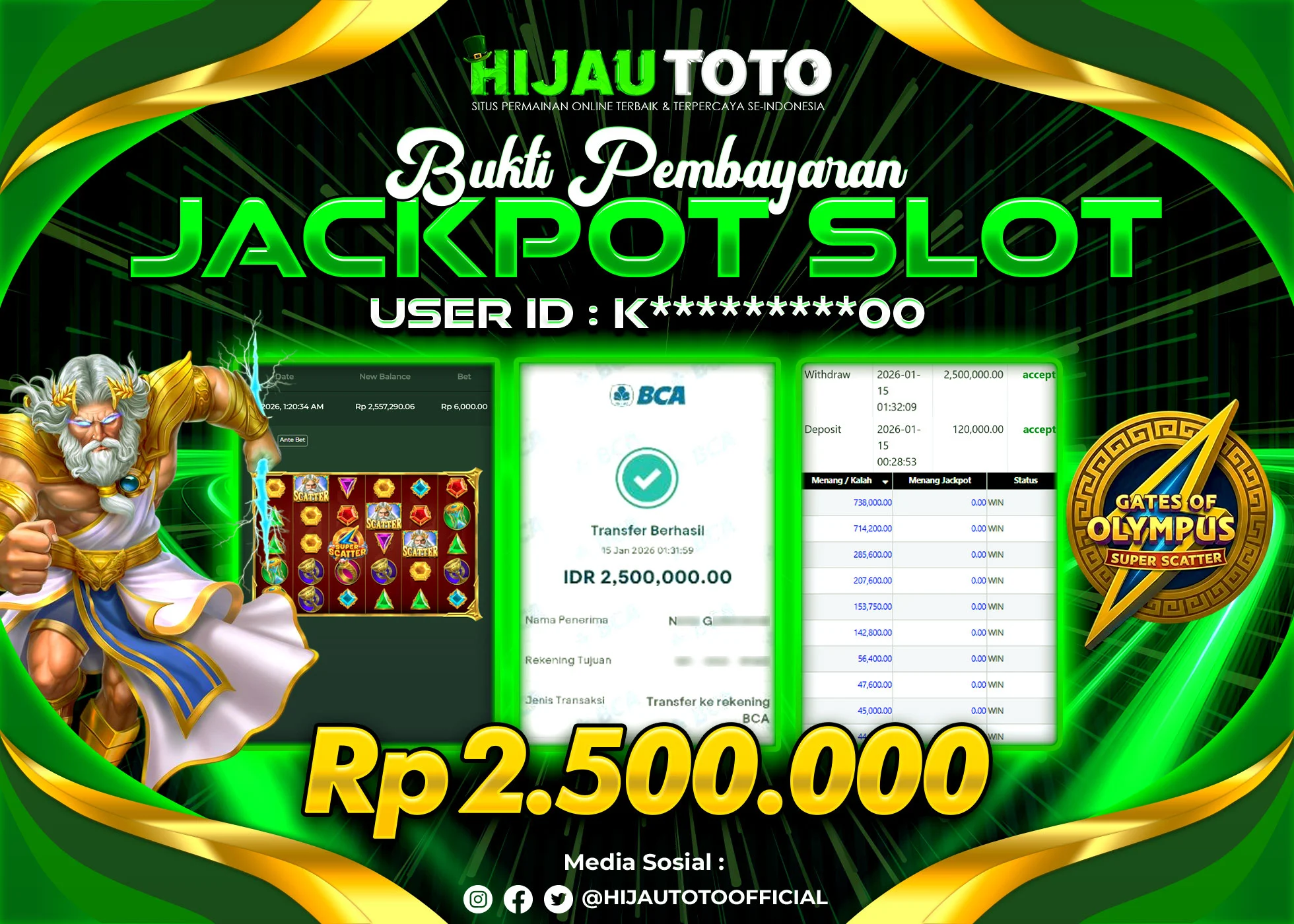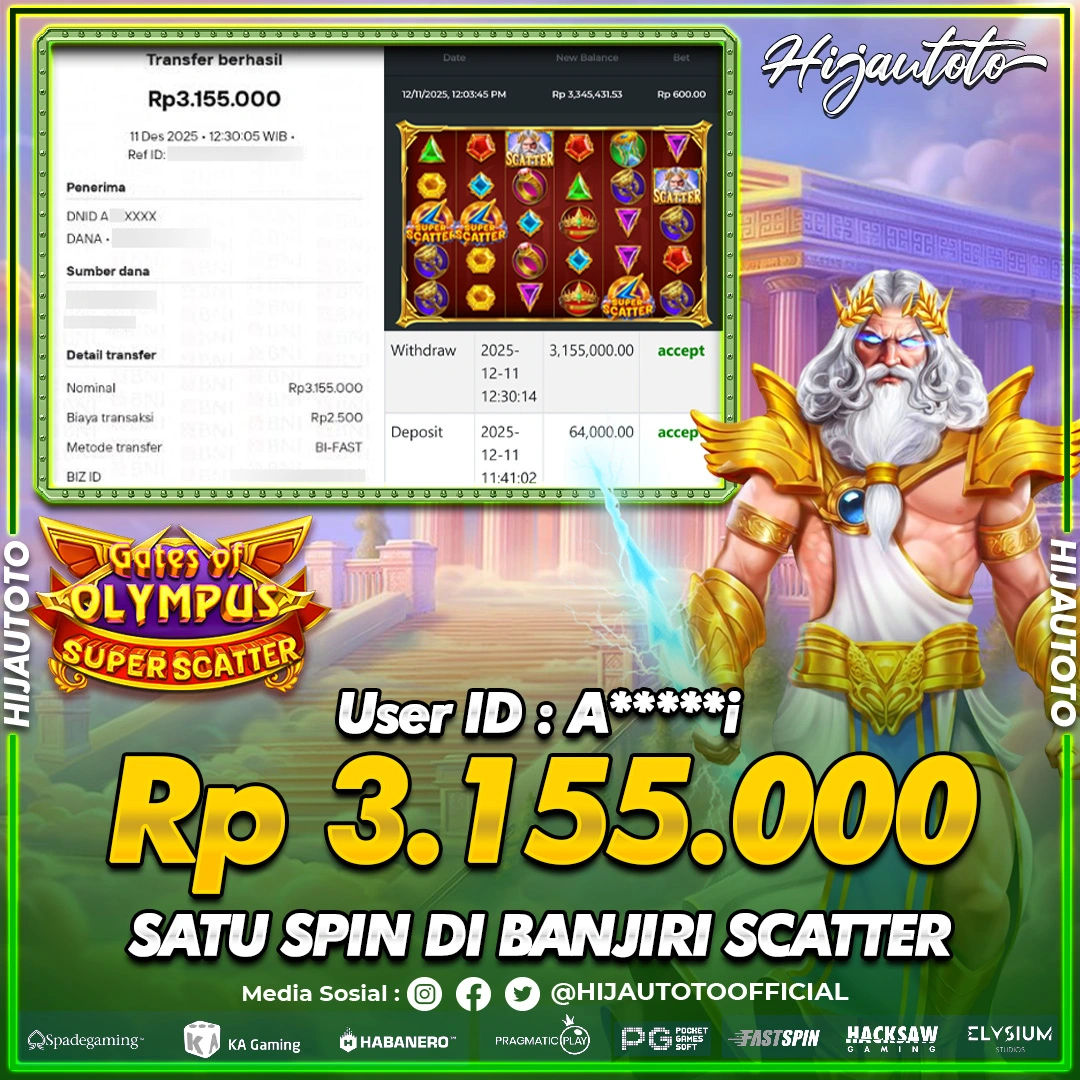 Selamat Kepada Member HIJAUTOTO K*********00 Telah Jackpot Di SLOT GATES OF OLYMPUS SUPER SCATTER