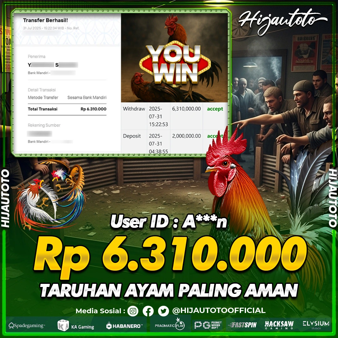 HIJAUTOTO juga menyediakan permainan sabung ayam online dengan sistem taruhan transparan dan live streaming langsung. Rasakan keseruan bertaruh dalam suasana pertandingan yang nyata dan dapatkan kesempatan menang yang adil.