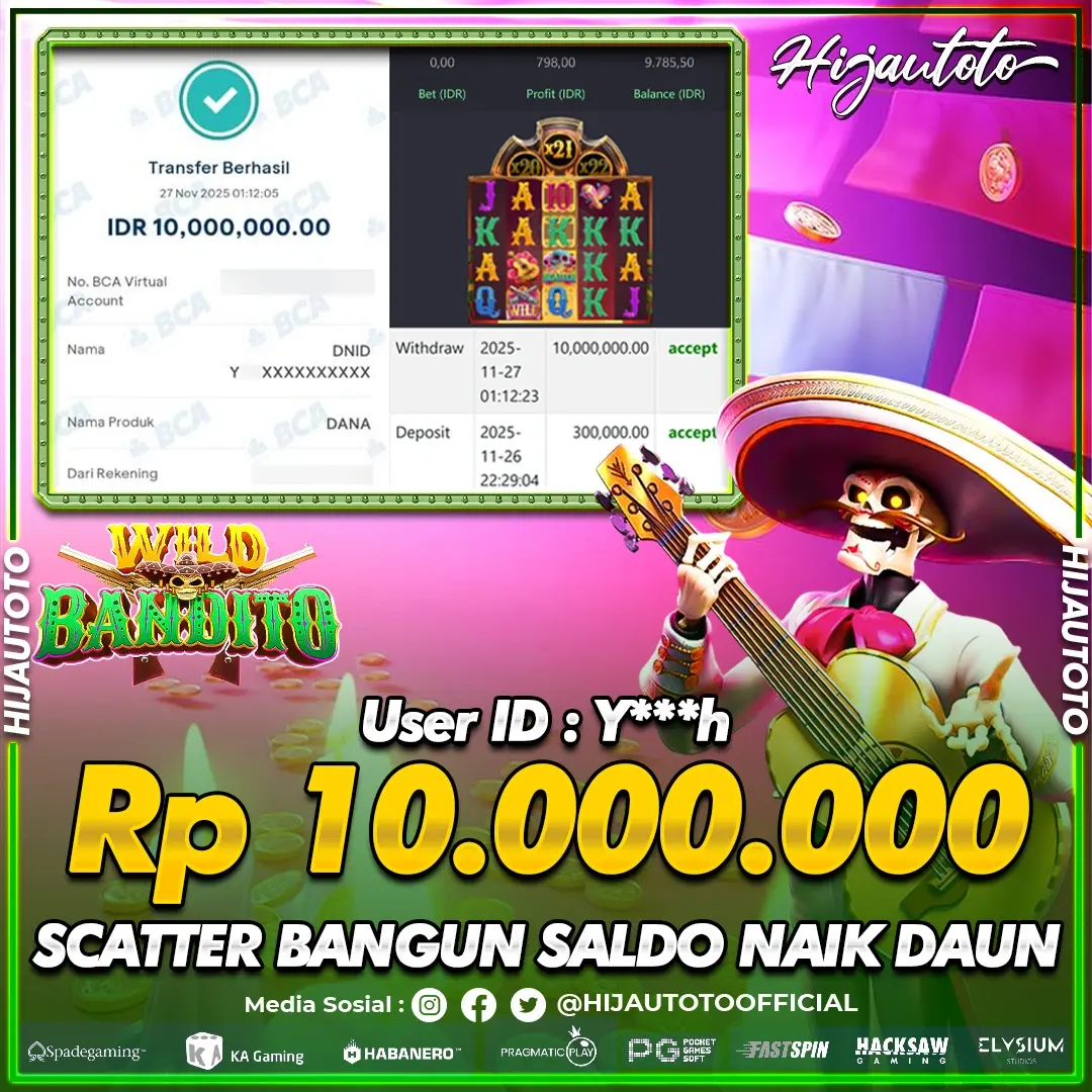 Selamat datang di HIJAUTOTO, tempatnya seru-seruan dan cuan besar! Mulai main cukup dengan modal Rp5.000 aja, taruhan super murah dari Rp100 perak! Mau main slot yang penuh warna? Atau togel dari 20 pasaran paling hits? Atau mungkin tembak ikan yang bikin deg-degan? Tenang, ada juga taruhan bola, sabung ayam, dan live casino yang bikin suasana makin hidup! Daftar sekarang dan dapetin bonus new member 100% langsung, biar modalmu makin tebal. Deposit gampang banget, bisa pakai QRIS, dan kalau butuh bantuan, customer service kita siap 24 jam nonstop. Jadi, tunggu apa lagi? Yuk, gabung dan bawa pulang kemenangannya cuma di HIJAUTOTO!
