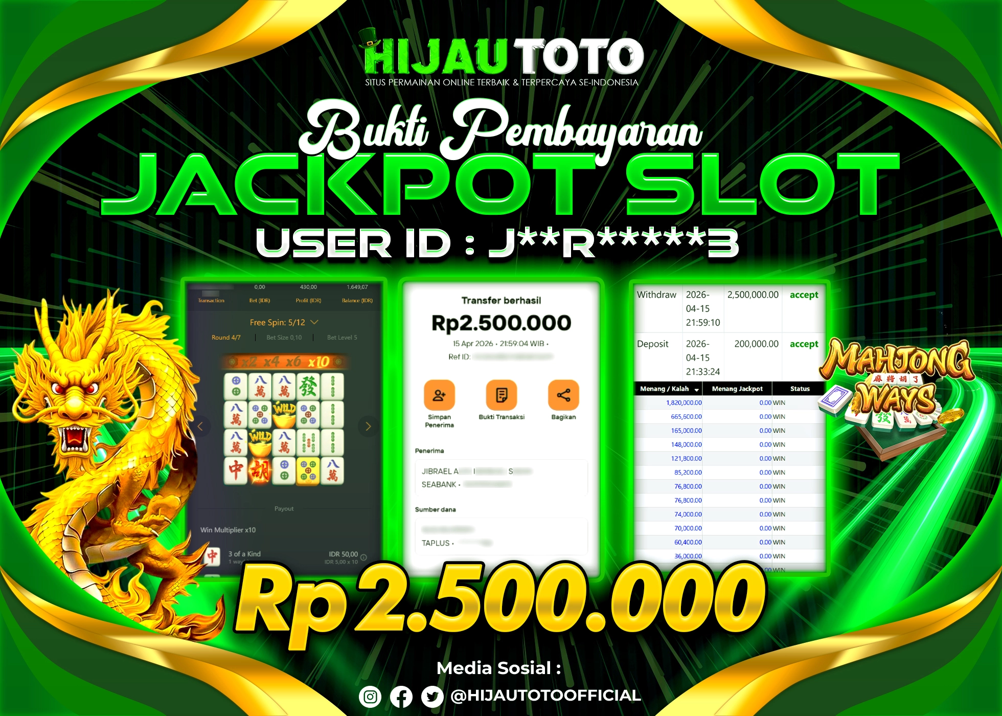 Bergabung dengan HIJAUTOTO sangat mudah dan cepat. Cukup lakukan pendaftaran dengan data lengkap, lakukan deposit minimal Rp5.000 melalui berbagai metode termasuk QRIS, dan mulai bertaruh dengan minimal taruhan Rp100. Dapatkan juga bonus new member 100% untuk modal bermain lebih besar.