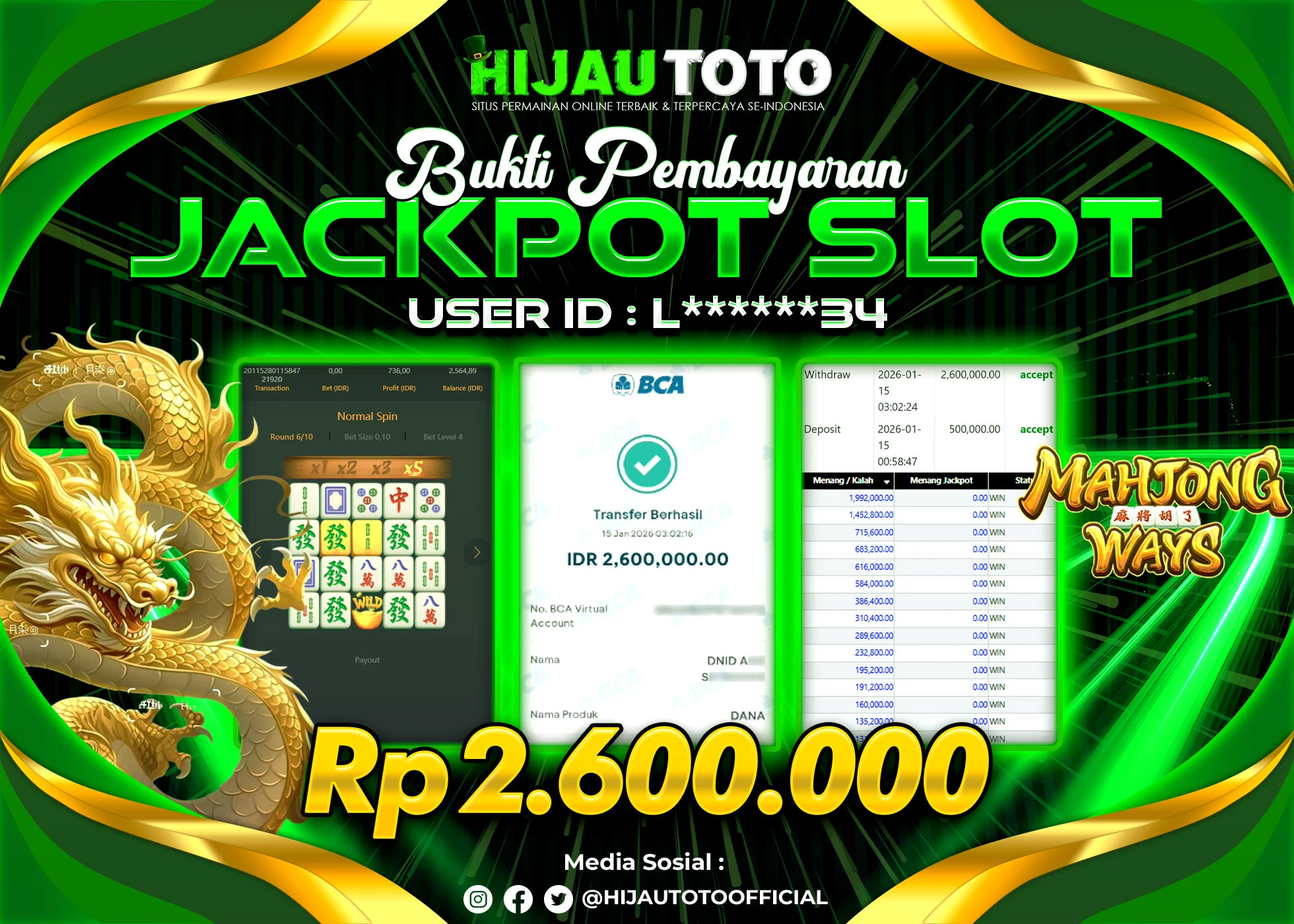 Bergabung dengan HIJAUTOTO sangat mudah dan cepat. Cukup lakukan pendaftaran dengan data lengkap, lakukan deposit minimal Rp5.000 melalui berbagai metode termasuk QRIS, dan mulai bertaruh dengan minimal taruhan Rp100. Dapatkan juga bonus new member 100% untuk modal bermain lebih besar.